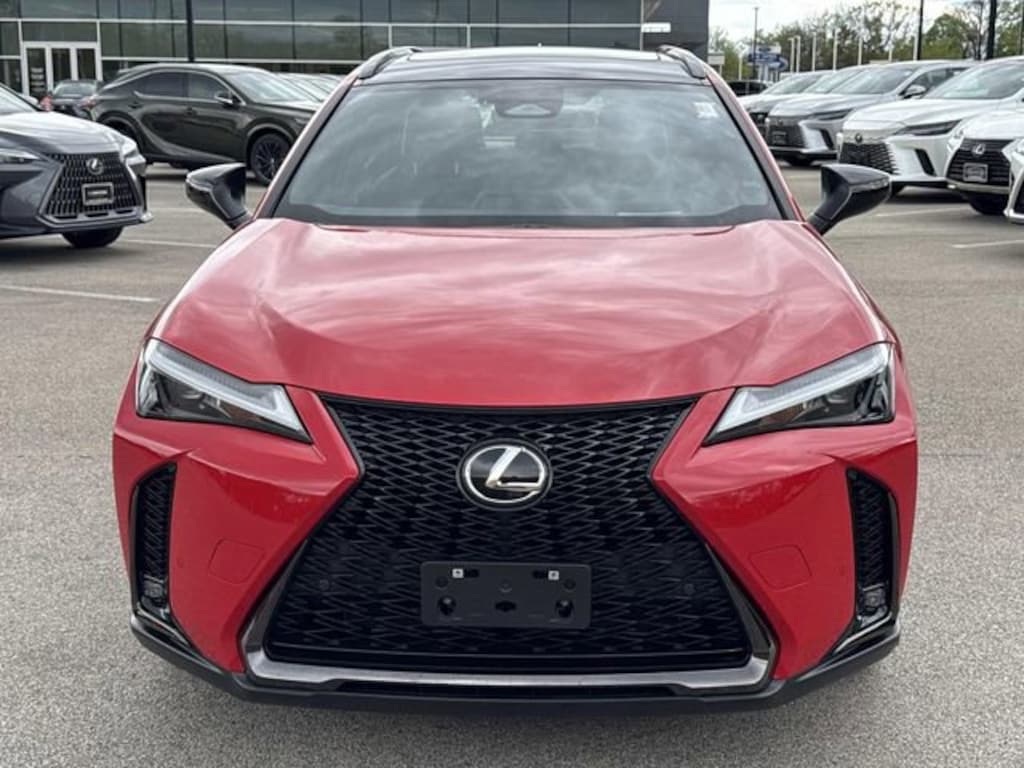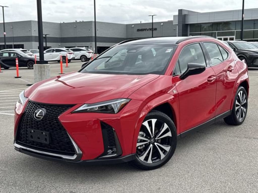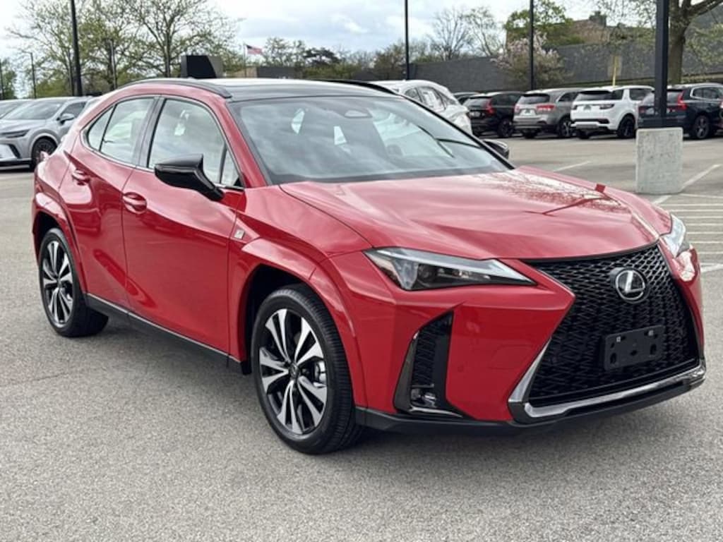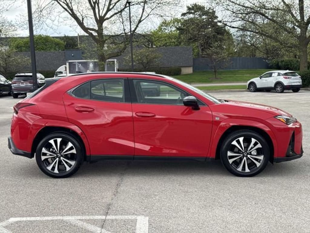 Certified by the best program in the industry seven years running, adding an UNLIMITED MILEAGE WARRANTY and four free services! Need financing? Check our seasonal specials! Come take a test drive today! Lexus Glenview is honored to offer this terrific-looking 2025 Lexus UX 300h F SPORT Design in Red Line Beautifully equipped with Appearance Package (Wheels: 18" Black w/Machined Finish F SPORT), Cold Area Package, 3.605 Axle Ratio, 4-Wheel Disc Brakes, 6 Speakers, ABS brakes, Air Conditioning, Alloy wheels, AM/FM radio: SiriusXM, Apple CarPlay/Android Auto, Auto High-beam Headlights, Auto-Dimming Rear-View Mirror, Automatic temperature control, Brake assist, Bumpers: body-color, Cargo Net, Compass, Delay-off headlights, Driver door bin, Driver vanity mirror, Dual front impact airbags, Dual front side impact airbags, Electronic Stability Control, Emergency communication system: Safety Connect (10-year trial), Exterior Parking Camera Rear, Four wheel independent suspension, Front anti-roll bar, Front Bucket Seats, Front Center Armrest, Front dual zone A/C, Front fog lights, Front reading lights, Fully automatic headlights, Heads-Up Display, Heated & Ventilated Front Bucket Seats, Heated door mirrors, Heated front seats, Illuminated entry, Key Gloves, Knee airbag, Leather Shift Knob, Leather steering wheel, Lexus Premium Sound System, Low tire pressure warning, NuLuxe Seat Trim, Occupant sensing airbag, Outside temperature display, Overhead airbag, Panic alarm, Passenger door bin, Passenger vanity mirror, Power door mirrors, Power driver seat, Power moonroof, Power passenger seat, Power Rear Door w/Kick Sensor, Power steering, Power windows, Radio data system, Rain sensing wipers, Rear anti-roll bar, Rear reading lights, Rear side impact airbag, Rear window defroster, Rear window wiper, Remote keyless entry, Security system, Speed control, Speed-sensing steering, Split folding rear seat, Spoiler, Steering wheel mounted audio controls, Tachometer, Telescoping steering wheel, Tilt steering wheel, Traction control, Trip computer, Turn signal indicator mirrors, Variably intermittent wipers, Ventilated front seats, Wheels: 18" x 7" Split-5-Spoke Gray Met Alum Alloy, and Wireless Charger!