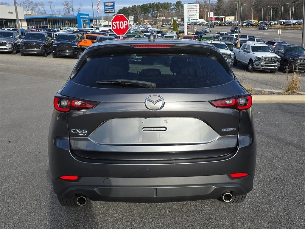 Certified. Machine Gray Metallic 2023 Mazda CX-5 2.5 S Select Package AWD 6-Speed Automatic SKYACTIV® 2.5L 4-Cylinder DOHC 16V Mazda Certified Pre-Owned Certified, 4-Wheel Disc Brakes, 4.624 Axle Ratio, 6 Speakers, ABS brakes, Air Conditioning, Alloy wheels, AM/FM radio, AppLink/Apple CarPlay and Android Auto, Auto High-beam Headlights, Automatic temperature control, Brake assist, Bumpers: body-color, Delay-off headlights, Driver door bin, Driver vanity mirror, Dual front impact airbags, Dual front side impact airbags, E911 Automatic Emergency Notification, Electronic Stability Control, Emergency communication system: MAZDA CONNECT, Exterior Parking Camera Rear, Four wheel independent suspension, Front anti-roll bar, Front Bucket Seats, Front Center Armrest w/Storage, Front dual zone A/C, Front reading lights, Fully automatic headlights, Heated Front Bucket Seats, Heated front seats, Illuminated entry, Infotainment System Voice Command, Leather Shift Knob, Leatherette Seat Trim, Low tire pressure warning, Machine Gray Metallic Paint, Multifunction Commander Control, Occupant sensing airbag, Outside temperature display, Overhead airbag, Overhead console, Pandora, Panic alarm, Passenger door bin, Passenger vanity mirror, Power door mirrors, Power driver seat, Power steering, Power windows, Radio Broadcast Data System Program Information, Radio data system, Radio: AM/FM/HD Audio System, Rain sensing wipers, Rear anti-roll bar, Rear reading lights, Rear seat center armrest, Rear window defroster, Rear window wiper, Remote keyless entry, SMS Text Msg Audio Delivery & Reply, Speed control, Speed-sensing steering, Split folding rear seat, Spoiler, Steering wheel mounted audio controls, Tachometer, Telescoping steering wheel, Tilt steering wheel, Traction control, Trip computer, Turn signal indicator mirrors, Variably intermittent wipers, Wheels: 17" x 7J Aluminum Alloy.