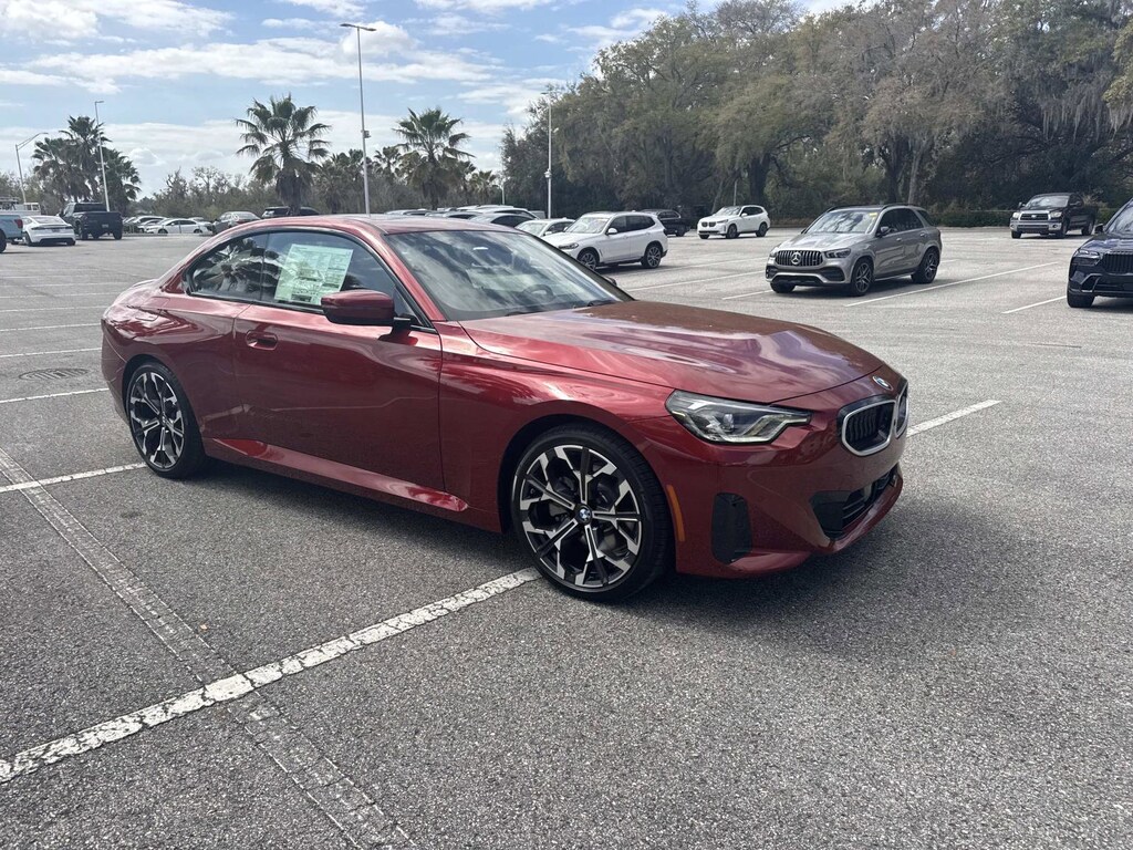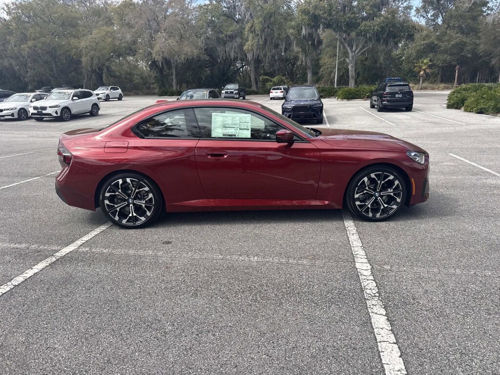 PREMIUM PACKAGE Remote Engine Start, Adaptive Full LED Lights, Live Cockpit Pro w/Head-Up Display, Heated Steering Wheel, Moonroof, Automatic High Beams, Universal Garage-Door Opener, harman/kardon® SURROUND SOUND SYSTEM, PARKING ASSISTANCE PACKAGE Drive Recorder, Parking View w/3D View (Surround View), Active Park Distance Control w/Side Protection, Parking Assistant Plus, WHEELS: 19 X 8.0 INDIVIDUAL Y-SPOKE BICOLOR Style 1038i, Tires: 225/40R19 All Season, Runflat Tires, DISTANCE CONTROL (ACC), LUMBAR SUPPORT, ASH GREY BLUE OPEN-PORED FINE WOOD TRIM. BMW 230i with Vegas Red Metallic exterior and Cognac interior features a 4 Cylinder Engine with 255 HP at 5000 RPM*.