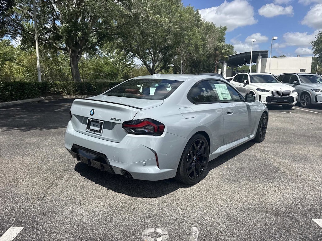 PREMIUM PACKAGE Remote Engine Start, Adaptive Full LED Lights, Live Cockpit Pro w/Head-Up Display, Heated Steering Wheel, Moonroof, Automatic High Beams, Universal Garage-Door Opener, M SPORT PACKAGE Wheels: 18 x 7.5 M Dual-Spoke, Style 848M, Bicolor, M Steering Wheel, Rear Spoiler, M Sport Pkg, Variable Sport Steering, M Fine Brushed Aluminum Interior Trim, Without Lines Designation Outside, M Sport Suspension, Aerodynamic Kit, harman/kardon® SURROUND SOUND SYSTEM, WHEELS: 19 X 8.0 M DUAL-SPOKE JET BLACK Style 995M, Tires: 225/40R19 All Season, Runflat Tires, PARKING ASSISTANCE PACKAGE Drive Recorder, Parking View w/3D View (Surround View), Active Park Distance Control w/Side Protection, Parking Assistant Plus, LUMBAR SUPPORT. BMW 230i with Brooklyn Grey Metallic exterior and Tacora Red interior features a 4 Cylinder Engine with 255 HP at 5000 RPM*.