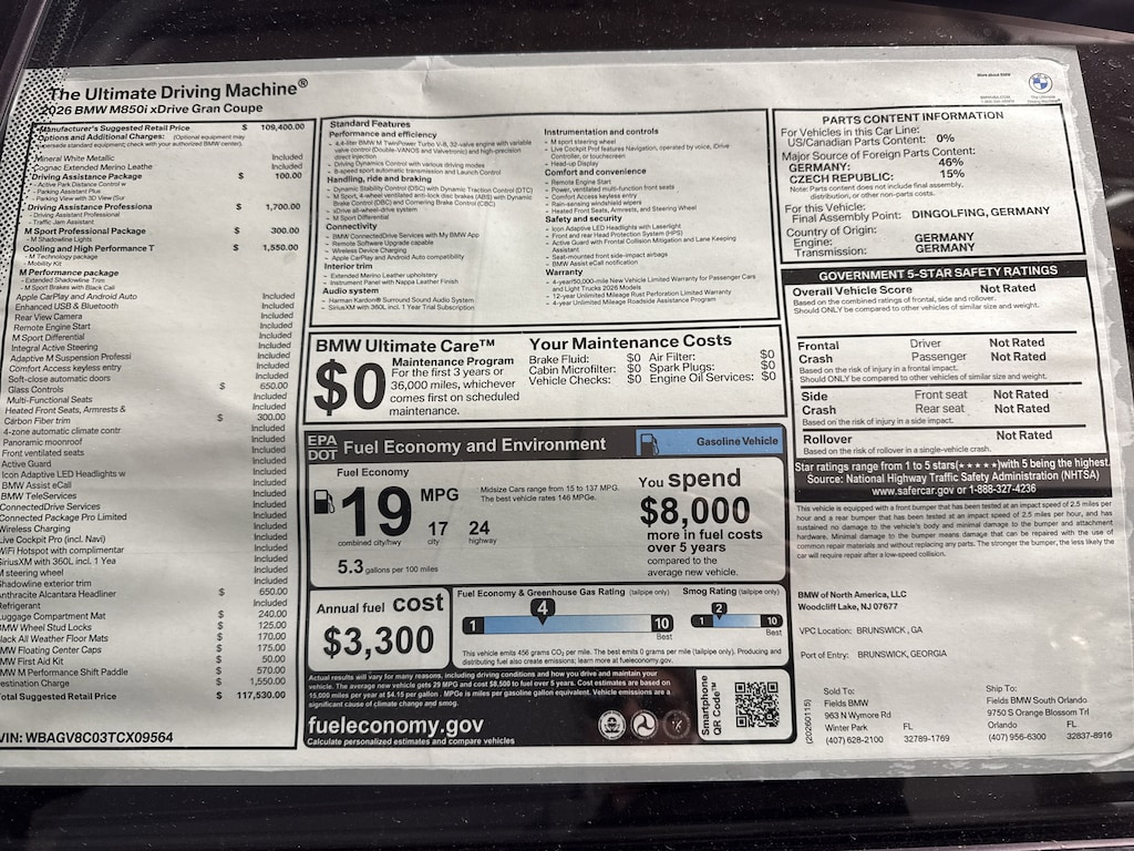 DRIVING ASSISTANCE PROFESSIONAL PACKAGE Lane Change Assistant, Driving Assistant Professional, Partial Automated Driving, Traffic Jam Assistant, hands-free driving up to 40 mph on selected highways, COOLING & HIGH PERFORMANCE TIRE PACKAGE M Technology Package, Provides enhanced cooling performance by means of a more powerful cooling fan and an additional engine oil cooler, Wheels: 20 x 8 Fr & 20 x 9 Rr Dual-Spoke (1E3), (Style 895M), Bicolor, Tires: 245/35R20 Fr & 275/30R20 Rr High Performance, Staggered, Mobility Kit, M SPORT PROFESSIONAL PACKAGE M Sport Brakes w/Black Calipers, Extended Shadowline Trim, M Shadowline Lights, M Performance Package, DRIVING ASSISTANCE PACKAGE Parking View w/3D View (Surround View), Rear View Camera, Driving Assistant, Active Blind Spot Detection, Active Park Distance Control w/Side Protection, Parking Assistant Plus.