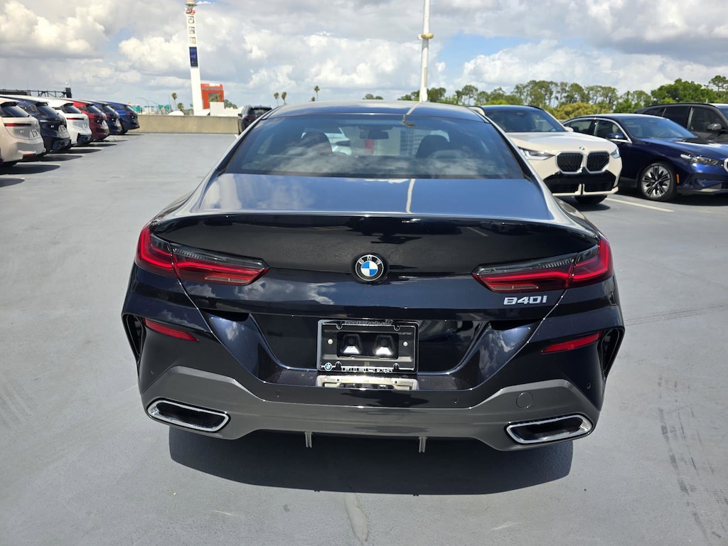 Leather Seats, Navigation, Panoramic Roof, Quad Bucket Seats, Power Liftgate, Rear Air, Heated Driver Seat, Turbocharged, Premium Sound System, Satellite Radio, iPod/MP3 Input, Onboard Communications System, Dual Moonroof, Remote Engine Start, Dual Zone A/C MP3 Player, Keyless Entry, Remote Trunk Release, Child Safety Locks, Steering Wheel Controls. BMW 840i with Carbon Black Metallic exterior and Black interior features a Straight 6 Cylinder Engine with 335 HP at 5000 RPM*.