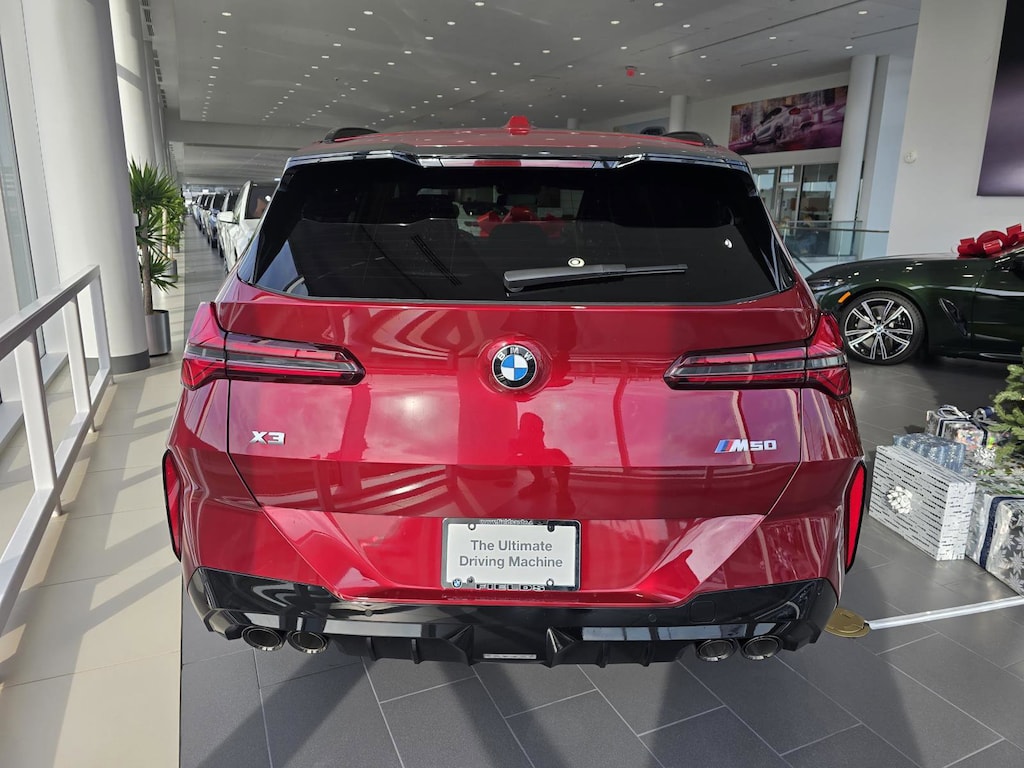 Navigation, Sunroof, Panoramic Roof, All Wheel Drive, Power Liftgate, Turbocharged, Satellite Radio, iPod/MP3 Input, Onboard Communications System, Remote Engine Start, Hands-Free Liftgate, Smart Device Integration, Blind Spot Monitor, Apple CarPlay®, WiFi Hotspot Rear Spoiler, MP3 Player, Keyless Entry, Remote Trunk Release, Privacy Glass. BMW M50 xDrive with Vegas Red Metallic exterior and Black interior features a Straight 6 Cylinder Engine with 393 HP at 5200 RPM*.