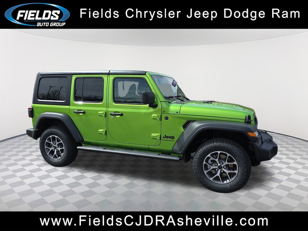 Chrysler Jeep Dodge Ram Asheville is pleased to offer this wonderful-looking 2025 Jeep Wrangler Sport S in Mojito Clearcoat Beautifully equipped with Convenience Group (2-Door Passive Entry, Front Door Locks, Air Conditioning w/Auto Temperature Control, Air Filtering, Cluster 7.0" TFT Color Display, Emergency/Assistance Call, Heated Front Seats, Heated Steering Wheel, Remote Start System, and Universal Garage Door Opener), LED Headlamp & Fog Lamp Group (Front LED Fog Lamps and LED Premium Reflector Headlamps), Quick Order Package 24S Sport S (Advanced Brake Assist, Automatic Headlamps, Corning Gorilla Glass, Deep Tint Sunscreen Windows, Enhanced Adaptive Cruise Control, Full Speed Forward Collision Warning Plus, Power Heated Mirrors, Premium Wrapped Steering Wheel, Security Alarm, Sun Visors w/Illuminated Vanity Mirrors, and Wheels: 17" x 7.5" Gray), Safety Group (Auto High Beam Headlamp Control, Blind Spot & Cross Path Detection, Injection Molded Black Rear Bumper, LED Taillamps, and ParkSense Rear Park Assist System), Trailer Tow & Aux Switch Group (7 & 4 Pin Wiring Harness, Auxiliary Switches, and Class II Receiver Hitch), 110 MPH Vehicle Max Speed Calibration, 3.45 Overall Top Gear Ratio, 4-Wheel Disc Brakes, 8 Speakers, ABS brakes, Air Conditioning, Apple CarPlay/Android Auto, Aux Battery, Black 3-Piece Hard Top, Brake assist, Cloth Low-Back Bucket Seats, Compass, Delay-off headlights, Driver door bin, Driver vanity mirror, Dual front impact airbags, Dual front side impact airbags, Electronic Stability Control, Front anti-roll bar, Front Bucket Seats, Front Center Armrest w/Storage, Front fog lights, Front reading lights, Illuminated entry, Integrated roll-over protection, Low tire pressure warning, MOPAR All-Weather Floor Mats, Mopar Black Tubular Side Steps, Non-Lock Fuel Cap w/o Discriminator, Normal Duty Suspension, Occupant sensing airbag, Outside temperature display, Overhead airbag, Panic alarm, ParkView Rear Back-Up Camera, Passenger door bin, Passenger vanity mirror, Power steering, Power windows, Radio data system, Radio: Uconnect 5 w/12.3" Display, Rear anti-roll bar, Rear reading lights, Rear Window Defroster, Rear Window Wiper/Washer, Remote keyless entry, Speed control, Split folding rear seat, Steering wheel mounted audio controls, Stop-Start Dual Battery System, Tachometer, Telescoping steering wheel, Tilt steering wheel, Traction control, Trip computer, Variably intermittent wipers, Wheels: 17" x 7.5" Black Steel Styled, and Wheels: 17" x 7.5" Machined w/Black Pockets!