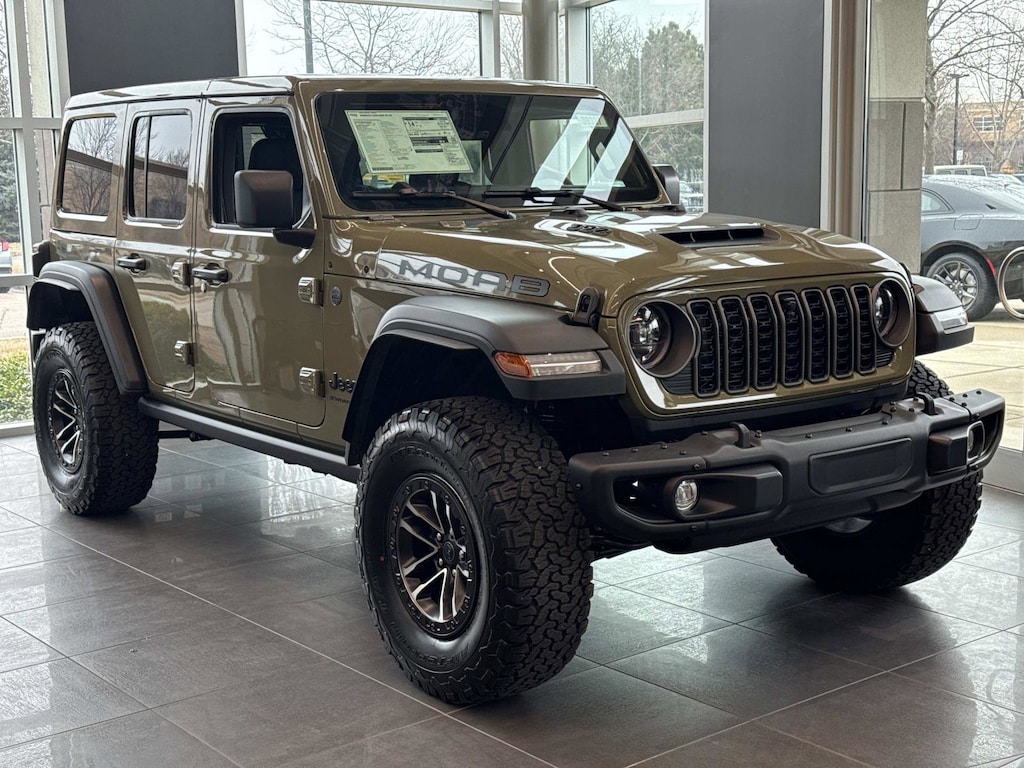 QUICK ORDER PACKAGE 27X MOAB -inc: 6.4L V8 SRT HEMI MDS Engine 8-Speed Automatic 8HP75 Transmission Freedom Panel Storage Bag Front Disconnecting Stabilizer Bar Rear Window Defroster Rear Window Wiper/Washer Body Color 3-Piece Hard Top E-Locker Front Axle, 41, 6.4L V8 SRT HEMI MDS ENGINE (STD), 8-SPEED AUTOMATIC 8HP75 TRANSMISSION (STD), FRONT LICENSE PLATE BRACKET, BLACK NAPPA LEATHER SEATS, Four Wheel Drive, Locking/Limited Slip Differential, Locking/Limited Slip Differential, Tow Hitch, Power Steering, ABS, 4-Wheel Disc Brakes, Brake Assist, Locking/Limited Slip Differential, Brake Actuated Limited Slip Differential, Aluminum Wheels, Tires - Front All-Terrain, Tires - Rear All-Terrain, Conventional Spare Tire, Targa Roof, Tow Hooks, Tow Hooks, Heated Mirrors, Power Mirror(s), Rear Defrost, Intermittent Wipers, Variable Speed Intermittent Wipers, Privacy Glass, Convertible Hardtop, Rollover Protection Bars, Power Door Locks, Fog Lamps, Daytime Running Lights, Automatic Headlights, LED Headlights, AM/FM Stereo, Navigation System, Satellite Radio, Bluetooth Connection, Requires Subscription, Premium Sound System, MP3 Capability, Steering Wheel Audio Controls, Auxiliary Audio Input, HD Radio, Premium Sound System, Satellite Radio, Requires Subscription, Bluetooth Connection, Heated Front Seat(s), Power Driver Seat, Power Passenger Seat, Driver Adjustable Lumbar, Power Driver Seat, Driver Adjustable Lumbar, Power Passenger Seat, Passenger Adjustable Lumbar, Pass-Through Rear Seat, Rear Bench Seat, Adjustable Steering Wheel, Trip Computer, Power Windows, Leather Steering Wheel, Heated Steering Wheel, Keyless Entry, Power Door Locks, Keyless Entry, Power Door Locks, Keyless Start, Universal Garage Door Opener, Cruise Control, Adaptive Cruise Control, Climate Control, Multi-Zone A/C, A/C, Auto-Dimming Rearview Mirror, Driver Vanity Mirror, Passenger Vanity Mirror, Floor Mats, Navigation System, Remote Engine Start, Keyless Start, Remote Engine Start, Smart Device Integration, Requires Subscription, Smart Device Integration, Smart Device Integration, WiFi Hotspot, Power Windows, Power Door Locks, Trip Computer, Immobilizer, Security System, Traction Control, Stability Control, Traction Control, Front Side Air Bag, Telematics, Requires Subscription, Front Collision Mitigation, Rear Parking Aid, Blind Spot Monitor, Cross-Traffic Alert, Tire Pressure Monitor, Driver Air Bag, Passenger Air Bag, Front Head Air Bag, Rear Head Air Bag, Passenger Air Bag Sensor, Child Safety Locks, Back-Up Camera