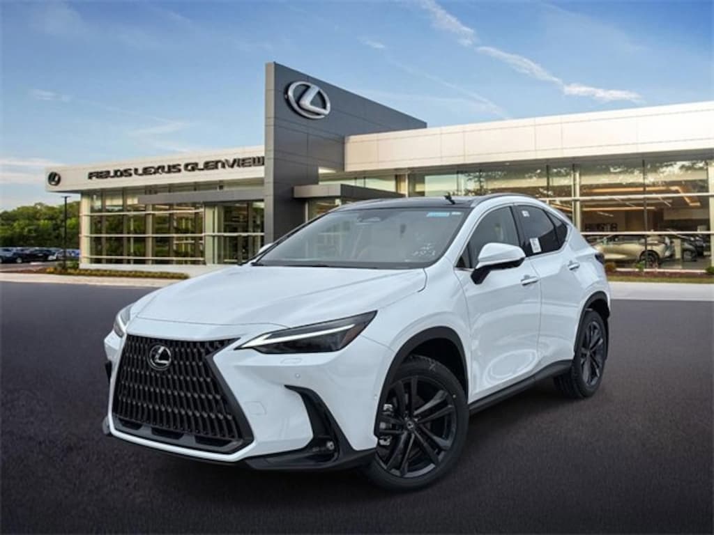 Lexus Glenview is pleased to offer this terrific 2026 Lexus NX 450h+ Luxury in Ultra White Beautifully equipped with 10 Speakers, 20" Wheels, 4-Wheel Disc Brakes, ABS brakes, Advanced Park, Air Conditioning, All-Weather Cargo Mat, All-Weather Floor Liners, Alloy wheels, AM/FM radio: SiriusXM, Auto High-beam Headlights, Auto tilt-away steering wheel, Auto-dimming door mirrors, Auto-dimming Rear-View mirror, Automatic temperature control, Brake assist, Bumpers: body-color, Delay-off headlights, Driver door bin, Driver vanity mirror, Dual front impact airbags, Dual front side impact airbags, Electronic Stability Control, Emergency communication system: Safety Connect (up to 10-year trial subscription included), Exterior Parking Camera Rear, Four wheel independent suspension, Front anti-roll bar, Front Bucket Seats, Front Center Armrest, Front dual zone A/C, Front fog lights, Front reading lights, Fully automatic headlights, Garage door transmitter: HomeLink, Genuine wood door panel insert, Heads-Up Display, Heated door mirrors, Heated front seats, Heated steering wheel, Illuminated entry, Knee airbag, Leather Seat Trim, Leather Shift Knob, Leather steering wheel, Low tire pressure warning, Mark Levinson 17-Speaker PurePlay Surround Sound, Memory seat, Mudguards, Navigation system: Drive Connect Cloud Navigation (3-year trial subscription included), Occupant sensing airbag, Outside temperature display, Overhead airbag, Overhead console, Panic alarm, Panorama Glass Roof, Panoramic View Monitor, Passenger door bin, Passenger vanity mirror, Power door mirrors, Power driver seat, Power Liftgate, Power moonroof, Power passenger seat, Power steering, Power windows, Radio data system, Radio: 10-Speaker Lexus Premium Sound System, Rain sensing wipers, Rear anti-roll bar, Rear reading lights, Rear seat center armrest, Rear window defroster, Rear window wiper, Remote keyless entry, Security system, Speed control, Speed-sensing steering, Speed-Sensitive Wipers, Split folding rear seat, Spoiler, Steering wheel memory, Steering wheel mounted audio controls, Tachometer, Telescoping steering wheel, Tilt steering wheel, Traction control, Trip computer, Turn signal indicator mirrors, Variably intermittent wipers, Ventilated front seats, Wheels: 20" Split 5-Spoke Alloy, Wireless Apple CarPlay/Wireless Android Auto, and Wireless Phone Charger!