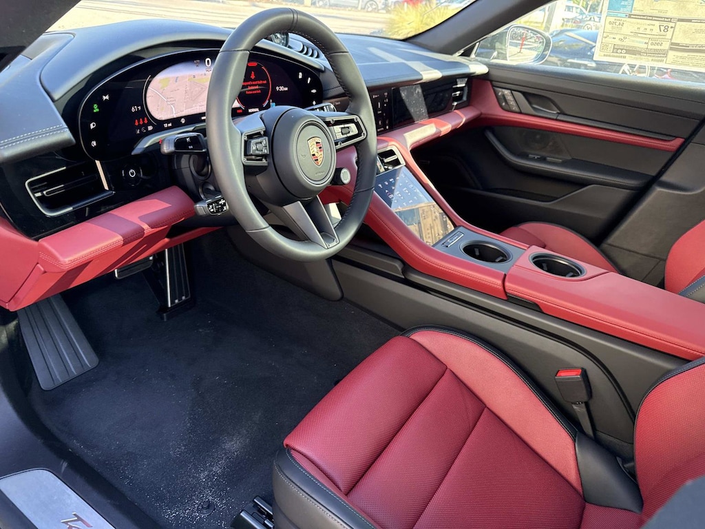 WHEELS: 21" HIGH GLOSS BLK TAYCAN EXCLUSIVE DESIGN -inc: Tires: 265/35R21 Fr & 305/30R21 Rr, BOSE SURROUND SOUND SYSTEM, EXTERIOR MIRRORS IN EXTERIOR COLOR, VOLCANO GREY METALLIC, FIXED PANORAMIC ROOF IN GLASS, PORSCHE CREST ON FRONT AND REAR HEADRESTS, REAR 2+1 SEATS, SPORT CHRONO PACKAGE, WHEELS PAINTED IN HIGH GLOSS BLACK, SURROUND VIEW W/ACTIVE PARKING SUPPORT, BLACK/BORDEAUX RED LEATHER SEAT TRIM W/TWO-TONE LEATHER INTERIOR, PORSCHE INNODRIVE W/ACC & ALK, INTERIOR ACCENTS IN BLACK, WINDOW TRIM IN HIGH GLOSS BLACK, UNDER DOOR PUDDLE LIGHT PROJECTORS, FRONT SEAT VENTILATION, PORSCHE ELECTRIC SPORT SOUND, 14-WAY COMFORT SEATS W/COMFORT MEMORY, PREMIUM PACKAGE -inc: Adaptive Cruise Control (ACC) Front Seat Ventilation Surround View w/Active Parking Support 14-Way Comfort Seats w/Comfort Memory Head-Up Display Storage Package Soft Close Doors Air Quality System, 1 YEAR OF 30 MINUTE DC CHARGING SESSIONS -inc: Electrify America stations, PERFORMANCE BATTERY PLUS, Electric Motor, All Wheel Drive, Air Suspension, Active Suspension, Power Steering, Air Suspension, Air Suspension, ABS, 4-Wheel Disc Brakes, Brake Assist, Lithium Ion Traction Battery, Aluminum Wheels, Tires - Front Performance, Tires - Rear Performance, Wheel Locks, Heated Mirrors, Power Mirror(s), Power Folding Mirrors, Rear Defrost, Intermittent Wipers, Variable Speed Intermittent Wipers, Rain Sensing Wipers, Rear Spoiler, Remote Trunk Release, Power Liftgate, Power Door Locks, Daytime Running Lights, Automatic Headlights, Headlights-Auto-Leveling, LED Headlights, Automatic Highbeams, AM/FM Stereo, Navigation System, Satellite Radio, HD Radio, Smart Device Integration, Requires Subscription, MP3 Capability, Steering Wheel Audio Controls, Auxiliary Audio Input, Bluetooth Connection, Power Driver Seat, Power Passenger Seat, Bucket Seats, Mirror Memory, Seat Memory, Heated Front Seat(s), Pass-Through Rear Seat, Bucket Seats, Adjustable Steering Wheel, Trip Computer, Power Windows, WiFi Hotspot, Leather Steering Wheel, Heated Steering Wheel, Keyless Entry, Power Door Locks, Keyless Start, Keyless Entry, Power Door Locks, Hands-Free Liftgate, Universal Garage Door Opener, Cruise Control, Climate Control, Multi-Zone A/C, A/C, Auto-Dimming Rearview Mirror, Driver Vanity Mirror, Passenger Vanity Mirror, Driver Illuminated Vanity Mirror, Passenger Illuminated Visor Mirror, Floor Mats, Mirror Memory, Seat Memory, Keyless Start, Power Windows, Power Door Locks, Trip Computer, Security System, Immobilizer, Traction Control, Stability Control, Traction Control, Front Side Air Bag, Rear Parking Aid, Blind Spot Monitor, Cross-Traffic Alert, Lane Departure Warning, Lane Keeping Assist, Lane Departure Warning, Front Collision Mitigation, Driver Monitoring, Telematics, Requires Subscription, Tire Pressure Monitor, Driver Air Bag, Passenger Air Bag, Front Head Air Bag, Rear Head Air Bag, Passenger Air Bag Sensor, Front Side Air Bag, Rear Side Air Bag, Knee Air Bag, Child Safety Locks, Back-Up Camera