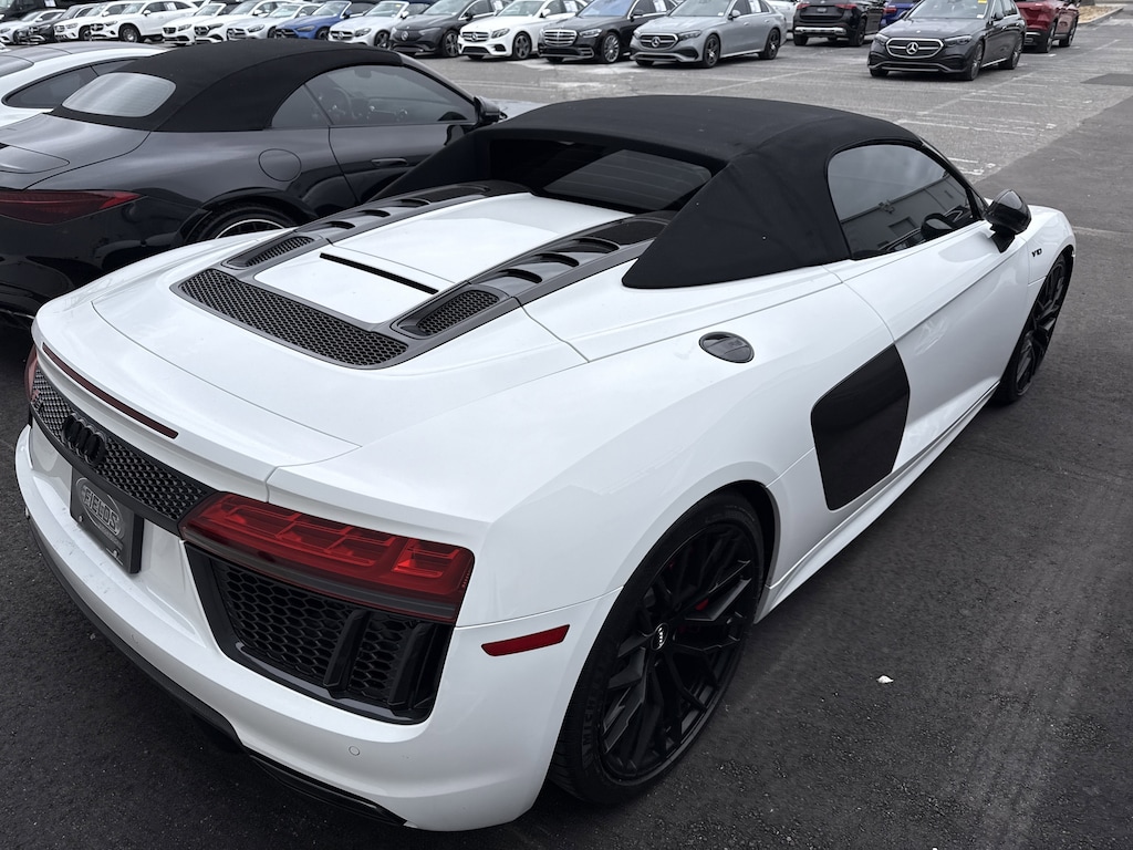 BLUETOOTH Bluetooth is a registered mark of Bluetooth SIG, Inc, BACKUP CAMERA, POWER PACKAGE - POWER WINDOWS AND DOOR LOCKS DUAL POWER SEAT, APPLE CARPLAY ANDROID CAR, ALLOY WHEELS, SOUND PACKAGE - SIRIUS XM SATELLITE RADIO, MERCEDES ME CONNECT, Black Leather. 20" Wheel Package (Wheels: 20" 10-Spoke-Y-design Forged Silver Alloy), Carbon Exterior Package (Carbon Sigma Sideblades), Carbon Interior Package, Diamond Stitch Leather Package (Leather Diamond Stitch Seats), Full Leather Package, Black Leather, 13 Speakers, 4-Wheel Disc Brakes, ABS brakes, Adaptive suspension, Air Conditioning, Alloy wheels, AM/FM radio, Audi Guard All-Weather Floor Mats, Auto High-beam Headlights, Auto-dimming door mirrors, Auto-dimming Rear-View mirror, Automatic temperature control, Brake assist, Bumpers: body-color, Compass, Contrast Stitching, Convertible roof lining, Convertible roof wind blocker, Delay-off headlights, Driver door bin, Driver vanity mirror, Dual front impact airbags, Dual front side impact airbags, Electronic Stability Control, Exterior Parking Camera Rear, Fine Nappa Leather Seat Trim, Four wheel independent suspension, Front anti-roll bar, Front Bucket Seats, Front Center Armrest, Front fog lights, Front reading lights, Fully automatic headlights, Garage door transmitter: HomeLink, Glass rear window, Heated door mirrors, Heated front seats, Heated Front Sport Bucket Seats, Illuminated entry, Integrated roll-over protection, Knee airbag, Leather Shift Knob, Low tire pressure warning, Navigation System, Occupant sensing airbag, Outside temperature display, Panic alarm, Passenger door bin, Passenger vanity mirror, Power convertible roof, Power door mirrors, Power driver seat, Power passenger seat, Power steering, Power windows, Radio data system, Radio: Audi MMI Navigation Plus, Rain sensing wipers, Rear anti-roll bar, Rear fog lights, Rear window defroster, Red Brake Calipers, Remote CD player, Remote keyless entry, Security system, Speed control, Speed-Sensitive Wipers, Sport steering wheel, Steering wheel mounted audio controls, Tachometer, Telescoping steering wheel, Tilt steering wheel, Traction control, Trip computer, Turn signal indicator mirrors, USB Cables, Variably intermittent wipers, Voltmeter, and Wheels: 19" 5-Spoke V-Design Aluminum.