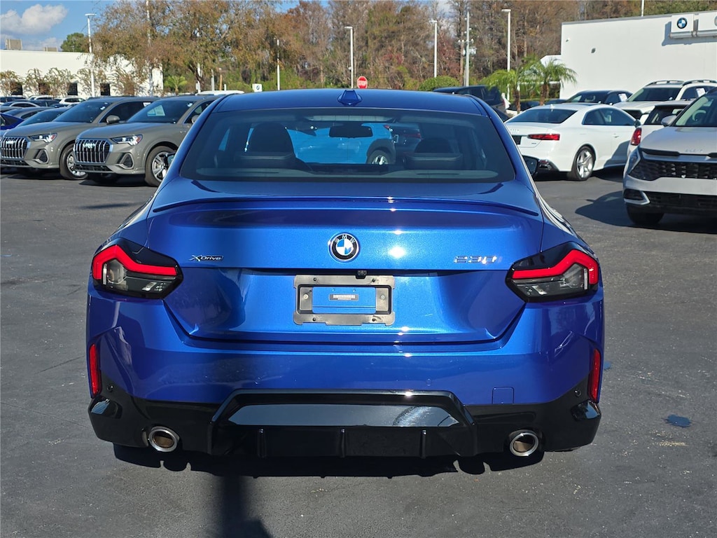 Navigation, All Wheel Drive, Rear Air, Back-Up Camera, Turbocharged, Satellite Radio, iPod/MP3 Input, Onboard Communications System, Dual Zone A/C, Smart Device Integration, WiFi Hotspot, Blind Spot Monitor, Apple CarPlay®, Cross-Traffic Alert MP3 Player, Steering Wheel Controls, Electronic Stability Control, Heated Mirrors, Bucket Seats. BMW 230i xDrive with Portimao Blue Metallic exterior and Black interior features a 4 Cylinder Engine with 255 HP at 5000 RPM*.