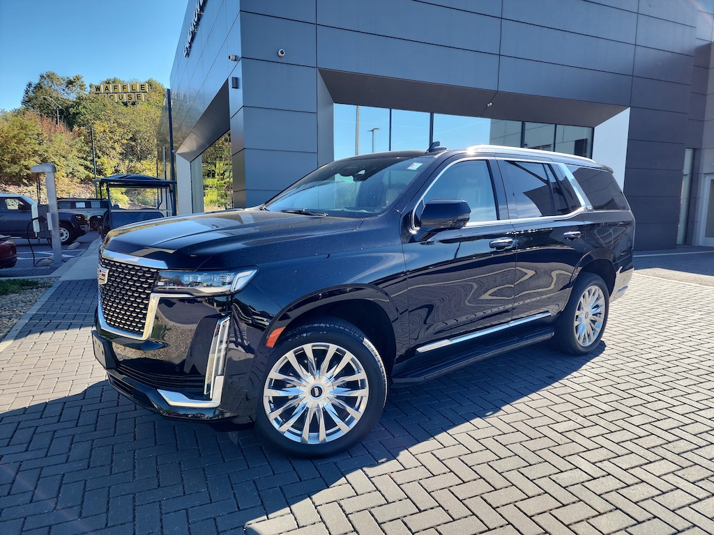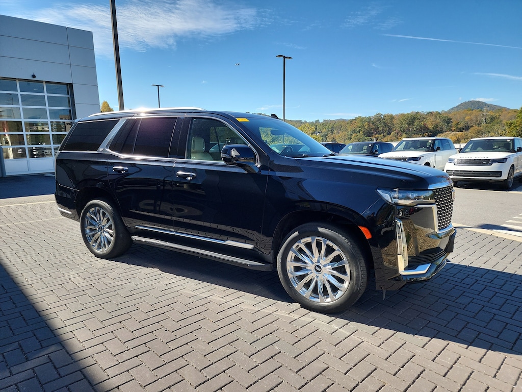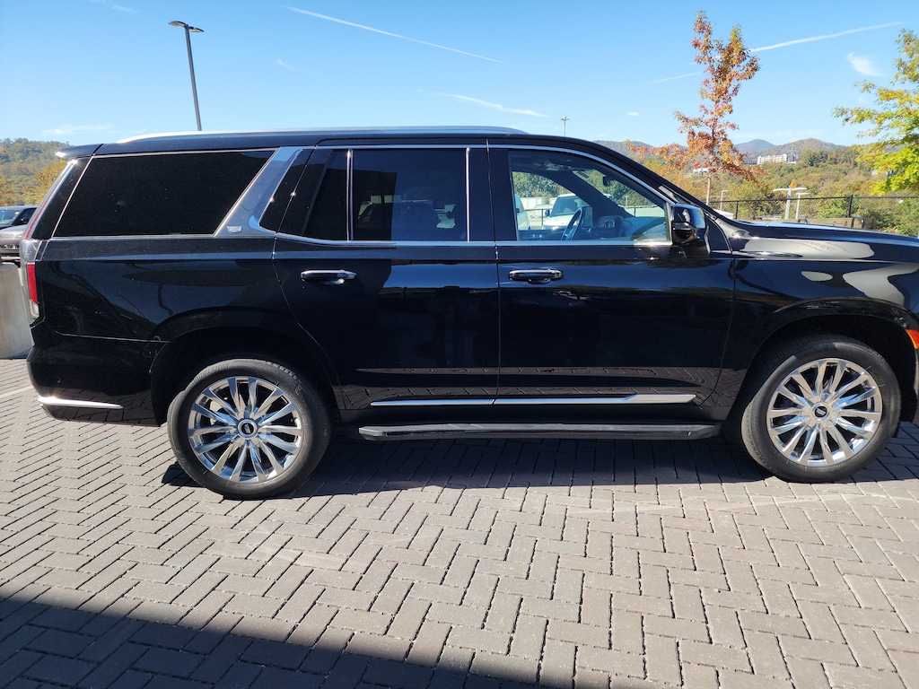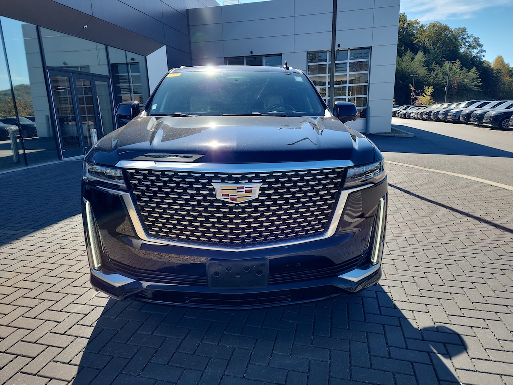 New Price! CARFAX One-Owner. Clean CARFAX. Black Raven 2022 Cadillac Escalade Premium Luxury 4WD 10-Speed Automatic 6.2L V8 4WD, Parchment With Jet Black Accents Leather, 16.9" Diagonal OLED Infotainment Screen, Adaptive Cruise Control, AKG Studio 19-Speaker Audio System, Apple CarPlay/Android Auto, Automatic Seat Belt Tightening, Automatic Stop/Start, Automatic temperature control, Door Lock & Latch Shields, Enhanced Automatic Emergency Braking, Enhanced Automatic Parking Assist, Fully automatic headlights, Glass Breakage Sensor, Heads-Up Display, Heated & Ventilated Driver & Front Passenger Seats, Heated rear seats, Lane Change Alert w/Side Blind Zone Alert, Mechanical Limited-Slip Differential, Memory seat, Power Liftgate, Power Panoramic Tilt-Sliding Sunroof, Preferred Equipment Group 1SB, Rain sensing wipers, Rear Camera Mirror, Rear Camera Mirror Washer, Rear Cross Traffic Alert, Reconfigurable Full-Color Head-Up Display, Reverse Automatic Braking, Running Board Assist Steps, Start/Stop System Disable Button, Super Cruise, Theft-Deterrent Alarm System, Vehicle Inclination Sensor, Vehicle Interior Movement Sensor.