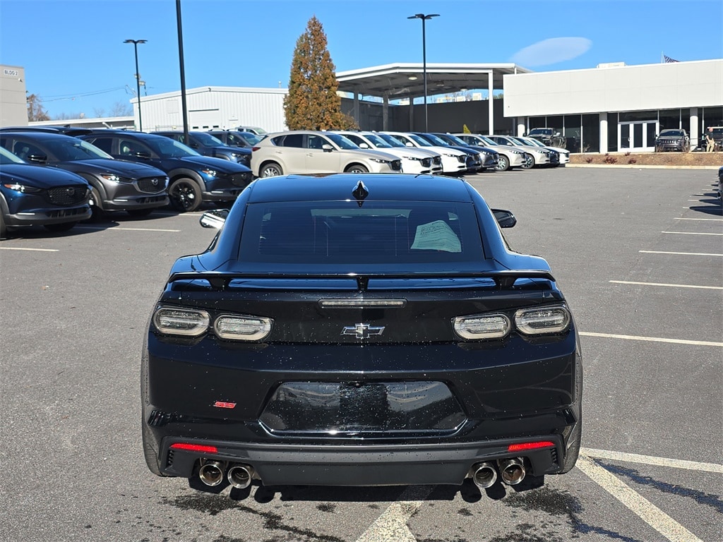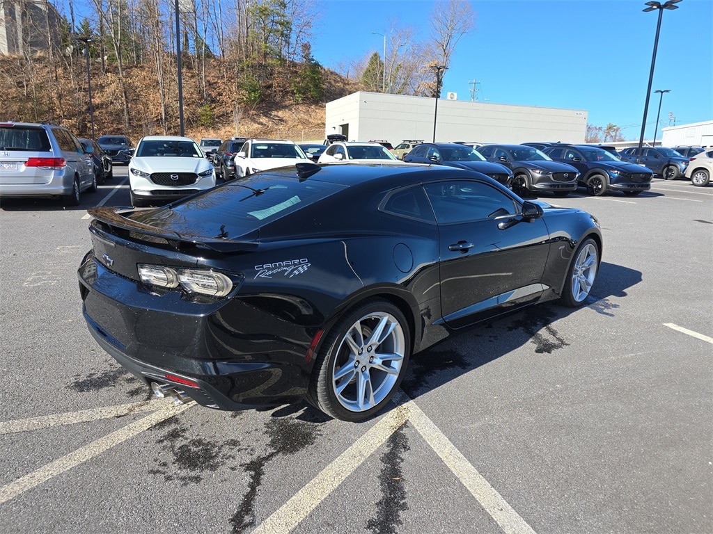 Black 2019 Chevrolet Camaro SS 1SS RWD 10-Speed Automatic 6.2L V8 2.77 Rear Axle Ratio, 4-Wheel Disc Brakes, 6 Speakers, 6-Speaker Audio System Feature, 6-Way Power Front Passenger Seat Adjuster, 8-Way Power Driver Seat Adjuster, ABS brakes, Air Conditioning, Alloy wheels, AM/FM radio: SiriusXM, Apple CarPlay/Android Auto, Automatic temperature control, Bluetooth® For Phone, Brake assist, Bumpers: body-color, Cloth Seat Trim, Compass, Delay-off headlights, Driver door bin, Driver vanity mirror, Dual front impact airbags, Dual front side impact airbags, Dual Mode Exhaust, Electronic Stability Control, Exterior Parking Camera Rear, Four wheel independent suspension, Front anti-roll bar, Front Bucket Seats, Front Center Armrest, Front License Plate Bracket, Front reading lights, Front Sport Bucket Seats, Fully automatic headlights, Illuminated entry, Knee airbag, Leather Shift Knob, Low tire pressure warning, Occupant sensing airbag, Overhead airbag, Paddle-Shift Manual Controls, Panic alarm, Passenger door bin, Passenger vanity mirror, Power door mirrors, Power driver seat, Power passenger seat, Power steering, Power Sunroof, Power windows, Preferred Equipment Group 1SS, Premium audio system: Chevrolet Infotainment System, Radio data system, Radio: Chevrolet Infotainment 3 Plus System, Rear anti-roll bar, Rear window defroster, Remote keyless entry, Remote Vehicle Starter System, Security system, SiriusXM Radio, Speed control, Speed-sensing steering, Spoiler, Steering wheel mounted audio controls, Tachometer, Telescoping steering wheel, Tilt steering wheel, Traction control, Trip computer, Variably intermittent wipers, Voltmeter, Wheels: 20" x 8.5" Fr & 20" x 9.5" Rr 5-Spoke Alum, Wheels: 20" x 8.5" Fr & 20" x 9.5" Rr Aluminum.