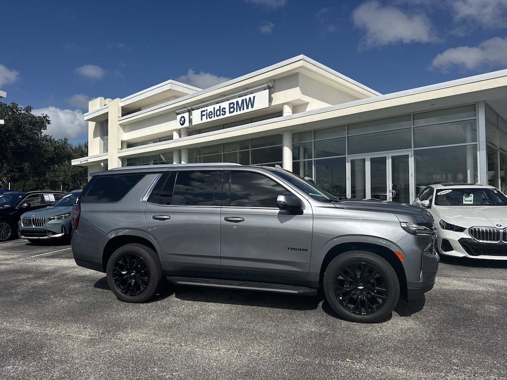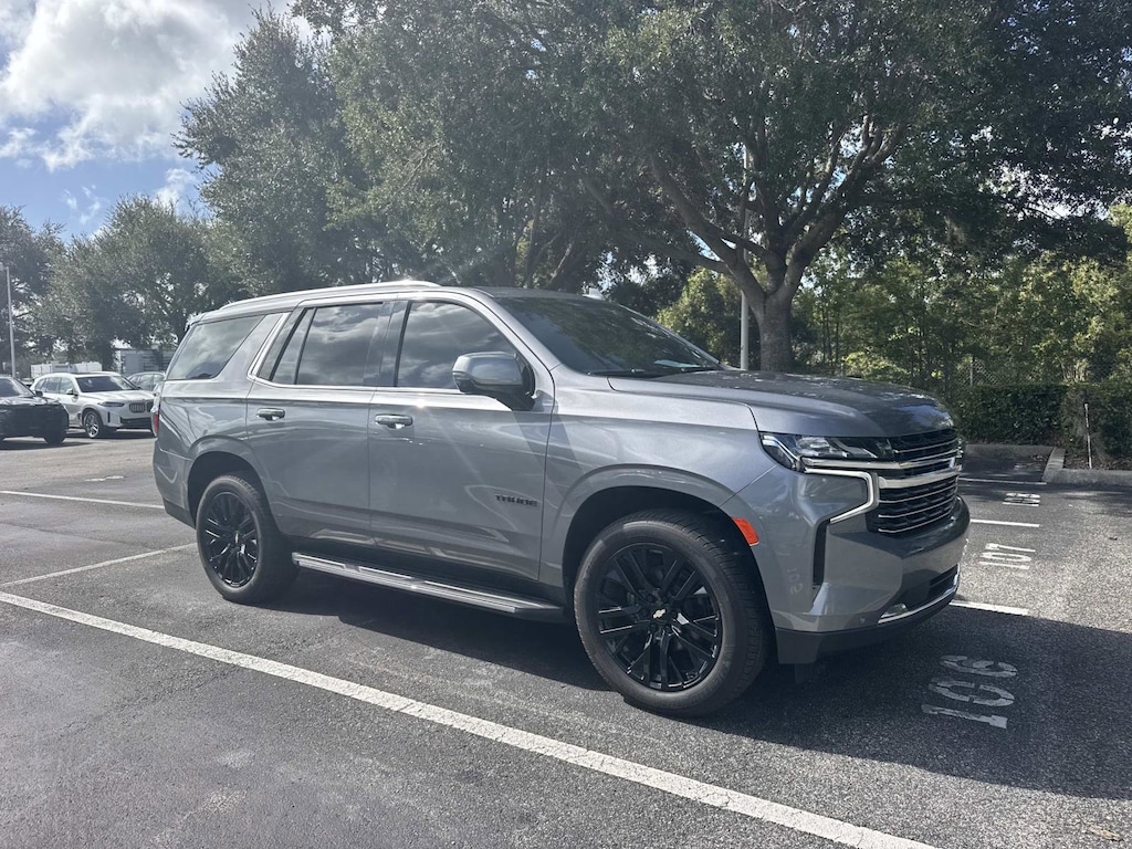 LT SIGNATURE PACKAGE includes (WPL) Luxury Package content, (RD4) 20 painted aluminum wheels with machine face and Argent Metallic pockets, (C3U) Panoramic power sunroof and (NHT) Max Trailering Package, LPO, 22 (55.9 CM) MULTI-SPOKE GLOSS BLACK WHEELS LPO wheels will come with 4 steel 22 wheels from the factory with alignment specs set to 22 LPO wheel selected (dealer-installed) (Includes factory-installed wheel locks and not (SFE) wheel locks, LPO. LUXURY PACKAGE includes (WPD) Driver Alert Package content, (UV2) HD Surround Vision, (UKK) Rear Pedestrian Alert, (A45) memory settings, (DXR) outside heated power-adjustable, power-folding, body-color mirrors with driver-side auto-dimming and integrated turn signal indicators, (N38) power tilt and telescopic steering column, (KI3) automatic heated steering wheel, (KA6) second row outboard heated seats, (ATT) second row power 60/40 split-folding bench seats and (AS8) third row power 60/40 split-folding bench seats, SEATS, SECOND ROW BUCKET, POWER RELEASE, AUDIO SYSTEM, CHEVROLET INFOTAINMENT 3 PLUS SYSTEM, 10.2 DIAGONAL HD COLOR TOUCHSCREEN AM/FM stereo, Bluetooth® audio streaming for 2 active devices, Apple CarPlay® and Android Auto® capable, enhanced voice recognition, in-vehicle apps, cloud connected personalization for select infotainment and vehicle settings. Subscription required for enhanced and connected services after trial period. (STD), ENGINE, 5.3L ECOTEC3 V8 with Dynamic Fuel Management, Direct Injection and Variable Valve Timing, includes aluminum block construction (355 hp [265 kW] @ 5600 rpm, 383 lb-ft of torque [518 Nm] @ 4100 rpm) (STD), TRANSMISSION, 10-SPEED AUTOMATIC electronically controlled with overdrive, includes Traction Select System including tow/haul (Most vehicles built on or after 6-7-2021 with a V8 engine will have (NSS) Not Equipped with Automatic Stop/Start, which removes Automatic Stop/Start, Engine control stop/start disable button and its content.) (STD), DRIVER ALERT PACKAGE includes (UHX) Lane Keep Assist with Lane Departure Warning, (UKC) Lane Change Alert with Side Blind Zone Alert, (UFG) Rear Cross Traffic Alert and (UD5) Front and Rear Park Assist. Chevrolet LT with Satin Steel Metallic exterior and Jet Black interior features a 8 Cylinder Engine with 355 HP at 5600 RPM*.