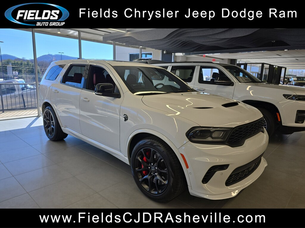 Our Pricing Mission at Fields Auto Group is to present market value pricing to all our customers. We monitor all our prices in Asheville and the surrounding area using a tool that allows us to compare prices on our vehicles to inventory at all our competitors. We monitor our prices daily to ensure our customers are getting the best value on a new or preowned vehicle. Chrysler Jeep Dodge Ram Asheville is delighted to offer this gorgeous-looking 2023 Dodge Durango SRT Hellcat in White Knuckle Clearcoat Beautifully equipped with Black Package (Eclipse Black Exhaust Tip, Gray Metallic Badges, Satin Black Dodge Tail Lamp Badge, and Wheels: 20" x 10" Lights Out Aluminum), Quick Order Package 2XY Hellcat Premium (1 USB Charging Port in Console, 12V Auxiliary Power Outlet In Console, 19 harman/kardon Amplified Speakers w/Subwoofer, 2nd Row Console w/Armrest & Storage, 3rd Row Floor Mat & Full Console, 7 & 4 Pin Wiring Harness, 825 Watt Amplifier, Adaptive Cruise Control w/Stop, Advanced Brake Assist, Class IV Receiver Hitch, Forged Carbon Fiber Interior Accents, Full Speed Forward Collision Warning Plus, High Performance Laguna Leather Seats, Illuminated Rear Cupholders, Lane Departure Warning Plus, Power Sunroof, Premium Instrument Panel, Red Seat Belts, and Trailer Brake Control), Navigation system: TomTom, 3.70 Rear Axle Ratio, 3rd row seats: split-bench, 4-Wheel Disc Brakes, 9 Speakers, ABS brakes, Air Conditioning, Alloy wheels, AM/FM radio: SiriusXM w/360L, Apple CarPlay/Android Auto, Audio memory, Auto High-beam Headlights, Auto-dimming door mirrors, Auto-dimming Rear-View mirror, Automatic temperature control, Brake assist, Bumpers: body-color, Compass, Delay-off headlights, Driver door bin, Driver vanity mirror, Dual front impact airbags, Dual front side impact airbags, Electronic Stability Control, Emergency communication system: SiriusXM Guardian, Four wheel independent suspension, Front anti-roll bar, Front Bucket Seats, Front Center Armrest w/Storage, Front dual zone A/C, Front reading lights, Fully automatic headlights, Garage door transmitter, Gloss Black Exterior Mirrors, Heated door mirrors, Heated front seats, Heated rear seats, Heated steering wheel, Illuminated entry, Knee airbag, Leather Shift Knob, Leather steering wheel, Leather Trimmed Bucket Seats, Low tire pressure warning, Memory seat, Occupant sensing airbag, Outside temperature display, Overhead airbag, Overhead console, Panic alarm, ParkView Rear Back-Up Camera, Passenger door bin, Passenger vanity mirror, Power door mirrors, Power driver seat, Power Liftgate, Power passenger seat, Power steering, Power windows, Radio data system, Radio: Uconnect 5 Nav w/10.1" Display, Rain sensing wipers, Rear air conditioning, Rear anti-roll bar, Rear reading lights, Rear window defroster, Rear window wiper, Remote keyless entry, Security system, Speed control, Speed-sensing steering, Speed-Sensitive Wipers, Split folding rear seat, Spoiler, Sport steering wheel, Steering wheel mounted audio controls, Tachometer, Telescoping steering wheel, Tilt steering wheel, Traction