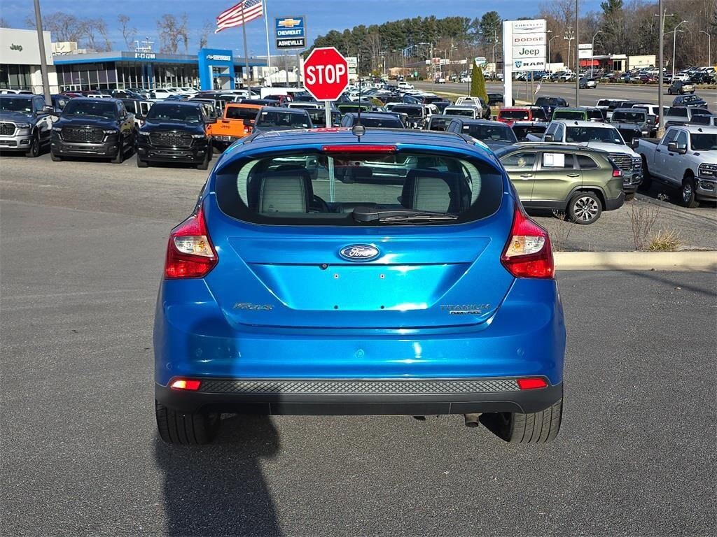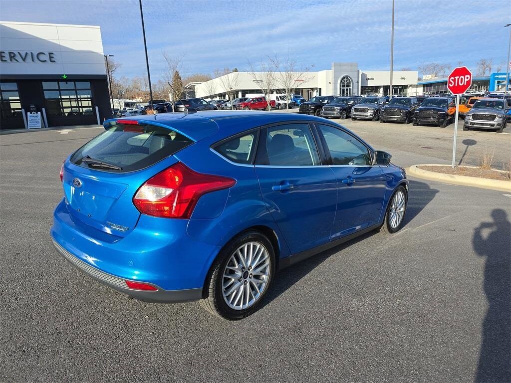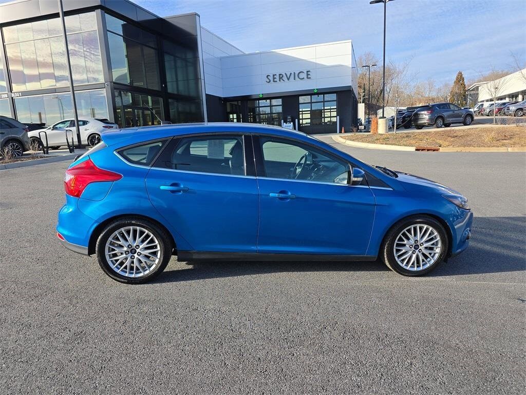 -Select- 2014 Ford Focus Titanium FWD 2.0L 4-Cylinder DGI DOHC 10 Speakers, 17" Sport Aluminum Wheels, 4-Wheel Disc Brakes, ABS brakes, Air Conditioning, Alloy wheels, AM/FM radio: SiriusXM, Automatic temperature control, Brake assist, Bumpers: body-color, CD player, Compass, Delay-off headlights, Driver door bin, Driver vanity mirror, Dual front impact airbags, Dual front side impact airbags, Electronic Stability Control, Exterior Parking Camera Rear, Four wheel independent suspension, Front anti-roll bar, Front Bucket Seats, Front Center Armrest, Front dual zone A/C, Front fog lights, Front reading lights, Fully automatic headlights, Heated door mirrors, Heated front seats, Heated Leather-Trimmed Sport Front Bucket Seats, Illuminated entry, Knee airbag, Leather Shift Knob, Leather steering wheel, Low tire pressure warning, Occupant sensing airbag, Outside temperature display, Overhead airbag, Overhead console, Panic alarm, Passenger door bin, Passenger vanity mirror, Power door mirrors, Power driver seat, Power steering, Power windows, Radio data system, Radio: AM/FM Single-CD/MP3-Capable, Rear anti-roll bar, Rear Parking Sensors, Rear seat center armrest, Rear window defroster, Rear window wiper, Remote keyless entry, Security system, SIRIUS Satellite Radio, Speed control, Split folding rear seat, Spoiler, Steering wheel mounted audio controls, SYNC Communications & Entertainment System, Tachometer, Telescoping steering wheel, Tilt steering wheel, Traction control, Trip computer, Turn signal indicator mirrors, Variably intermittent wipers.