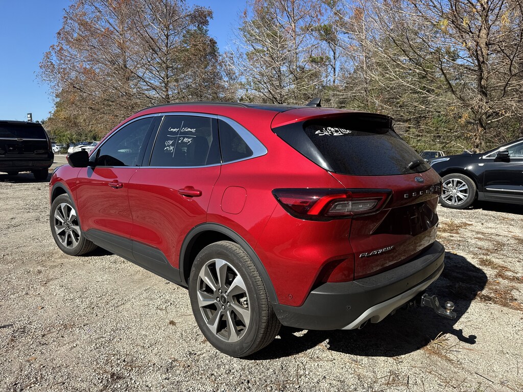 Escape Platinum, 4D Sport Utility, EcoBoost 2.0L I4 GTDi DOHC Turbocharged VCT, 8-Speed Automatic, AWD, Rapid Red Metallic Tinted Clearcoat, Space Gray Leather, 4-Wheel Disc Brakes, Active Park Assist 2.0, AM/FM Stereo, Auto High-beam Headlights, Black Roof-Rack Side Rails, Brake assist, Bumpers: body-color, Class II Trailer Tow Package, Delay-off headlights, Driver door bin, Dual front impact airbags, Electronic Fuel Door Release, Electronic Stability Control, Equipment Group 601A, Exterior Parking Camera Rear, FordPass Connect, Front fog lights, Fully automatic headlights, Garage door transmitter, HD Radio, Head-Up Display, Heated door mirrors, Heated Leather-Trimmed Front Sport Contour Seats, Heated steering wheel, Memory seat, Navigation system: Connected Navigation, Occupant sensing airbag, Outside temperature display, Overhead airbag, Panoramic Vista Roof, Power door mirrors, Power driver seat, Power Liftgate, Power windows, Premium Technology Package, Radio: B&O Sound System by Bang & Olufsen, Rain sensing wipers, Rear anti-roll bar, Rear reading lights, Rear seat center armrest, Roof rack: rails only, Speed-sensing steering, Speed-Sensitive Wipers, SYNC 4 w/Enhanced Voice Recognition, Telescoping steering wheel, Tilt steering wheel, Traction control, Variably intermittent wipers, Wheels: 19" Machined-Face Aluminum.