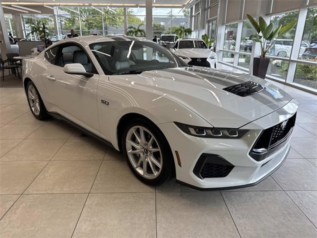 Lexus Glenview is excited to offer this terrific 2024 Ford Mustang GT Premium in Oxford White Beautifully equipped with Equipment Group 400A Standard Package, 3.55 Limited Slip Rear Axle, 4-Wheel Disc Brakes, 9 Speakers, ABS brakes, Active Valve Performance Exhaust, Air Conditioning, Alloy wheels, AM/FM radio: SiriusXM with 360L, AM/FM Stereo, Auto High-beam Headlights, Auto-dimming Rear-View mirror, Automatic temperature control, Brake assist, Bumpers: body-color, Climate Controlled Heated/Cooled Front Seats, Compass, Delay-off headlights, Driver door bin, Driver vanity mirror, Dual front impact airbags, Dual front side impact airbags, Electronic Stability Control, Emergency communication system: 911 Assist, Exterior Parking Camera Rear, Four wheel independent suspension, Front anti-roll bar, Front Bucket Seats, Front Center Armrest, Front dual zone A/C, Front reading lights, Fully automatic headlights, Garage door transmitter, HD Radio, Heated door mirrors, Heated front seats, Heated steering wheel, Illuminated entry, Knee airbag, Leather Shift Knob, Leather steering wheel, Leather-Trimmed Bucket Seats, Low tire pressure warning, Occupant sensing airbag, Opacity Fade Stripe, Outside temperature display, Over-the-Top Racing Stripe, Overhead airbag, Overhead console, Panic alarm, Passenger door bin, Passenger vanity mirror, Power door mirrors, Power driver seat, Power passenger seat, Power steering, Power windows, Radio data system, Rain sensing wipers, Rear anti-roll bar, Rear Parking Sensors, Rear window defroster, Remote keyless entry, SiriusXM w/360L, Speed control, Speed-sensing steering, Speed-Sensitive Wipers, Split folding rear seat, Spoiler, Sport steering wheel, Steering wheel mounted audio controls, SYNC 4.0 QNX, Tachometer, Telescoping steering wheel, Tilt steering wheel, Traction control, Trip computer, Turn signal indicator mirrors, Variably intermittent wipers, Ventilated front seats, Voltmeter, and Wheels: 19" x 8.5" Shadow Silver-Painted Aluminum!