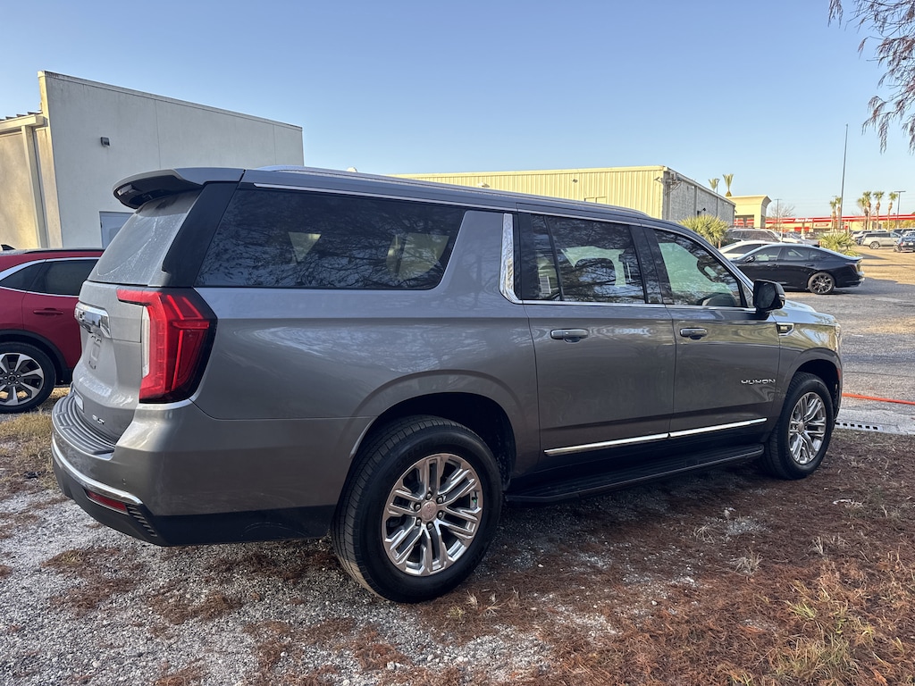 Odometer is 14233 miles below market average! Yukon XL SLT, 4D Sport Utility, EcoTec3 5.3L V8, 10-Speed Automatic with Overdrive, 4WD, Satin Steel Metallic, Dark Walnut/Slate Leather, 12-Way Power Seat Adjusters, 2 Presets For Outside Rearview Mirrors, 2 Presets For Power Driver Seat, 3rd Row 60/40 Power-Folding Split-Bench Seat, 9 Speakers, ABS brakes, AM/FM radio: SiriusXM with 360L, Apple CarPlay/Android Auto, Auto High-beam Headlights, Auto-dimming Rear-View mirror, Automatic Emergency Braking, Automatic temperature control, Bose 9-Speaker Stereo Audio System Feature, Bright Chrome Bodyside Moldings, Bright Front & Rear Door Sill Plates, Chrome Door Handles w/Body-Color Strip, Compass, Delay-off headlights, Driver door bin, Driver vanity mirror, Dual front side impact airbags, Dual-Pane Panoramic Power Sunroof, Emergency communication system: OnStar and GMC connected services capable, Following Distance Indicator, Forward Collision Alert, Front fog lights, Front Pedestrian Braking, Front reading lights, Garage door transmitter, Hands-Free Power Programmable Rear Liftgate, HD Surround Vision, Heated & Ventilated Driver & Front Passenger Seats, Heated 2nd Row Outboard Position Seats, Heated Automatic Steering Wheel, Heated Driver & Front Passenger Seats, Inside Rear-View Auto-Dimming Mirror, Lane Change Alert w/Side Blind Zone Alert, Lane Keep Assist w/Lane Departure Warning, Leather steering wheel, Low tire pressure warning, Not Equipped w/Steering Column Lock, Not Equipped w/Wireless Charging, Outside Heated Power-Adjustable Mirrors, Outside temperature display, Overhead airbag, Panic alarm, Passenger vanity mirror, Power Release 2nd Row 60/40 Split-Folding Bench Seat, Power Tilt & Telescopic Steering Column, Power windows, Preferred Equipment Group 4SA, Rain sensing wipers, Rear air conditioning, Rear Pedestrian Alert, Rear window defroster, Rear window wiper, Remote keyless entry, Safety Alert Seat, Security system, SLT Luxury Package, SLT Premium Package, Speed control, Split folding rear seat, Universal Home Remote, Variably intermittent wipers, Ventilated front seats, Wheels: 20" x 9" 6-Spoke Polished Aluminum.Fields Matters Because You Matter! With over 30 locations we have access to thousands of used vehicles plus the LARGEST selection of CERTIFIED CADILLACs in North Florida!