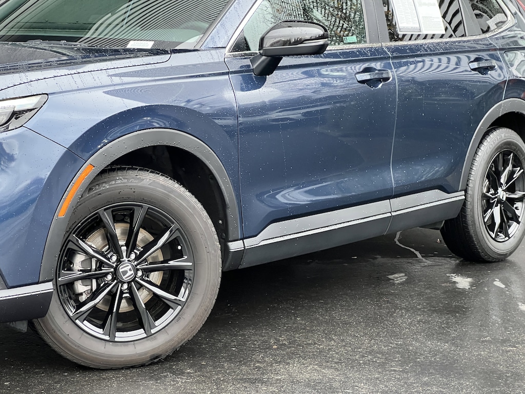 **This 2024 Honda CR-V Hybrid Sport delivers outstanding efficiency, modern style, and all-weather confidence--making it an ideal choice for life in the Pacific Northwest. Powered by Hondas 2.0L i-4 Hybrid system, it achieves an impressive EPA-estimated **40 MPG city / 34 MPG highway**, giving you the fuel savings of a hybrid without sacrificing performance. Hondas hybrid system offers quiet, responsive acceleration, smooth power delivery, and the long-term reliability Honda is known for. The Sport trim adds bold styling and premium touches, including striking **18" Berlina Black alloy wheels**, **cloth/leatherette sport seats**, **heated front seats**, and a **240-watt premium audio system**. Finished in the vibrant **Canyon River Blue Metallic**, this CR-V Hybrid also features LED lighting, advanced emissions technology, and Hondas intuitive dual-motor hybrid drive for enhanced traction and efficiency. Its **all-wheel drive system** ensures year-round stability--perfect for PNW rain, ski trips, and weekend exploring. With Hondas legendary build quality and the long-term benefits of hybrid ownership--lower fuel costs, reduced idling wear, and quieter operation--this CR-V Sport Hybrid is a smart and stylish upgrade for any driver.**