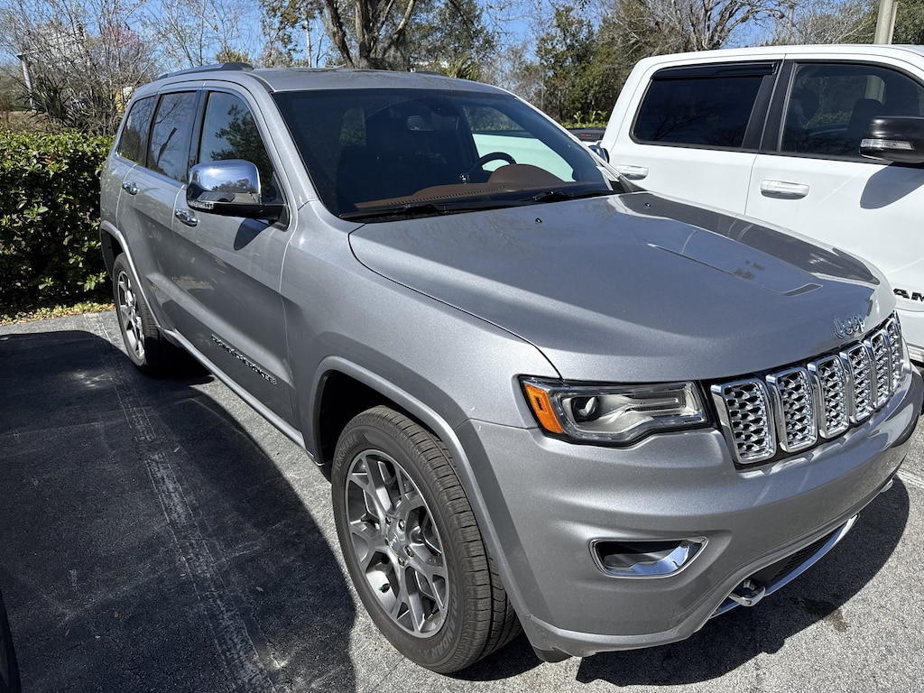 CARFAX One-Owner. Clean CARFAX. Billet Silver Metallic Clearcoat 2021 Jeep Grand Cherokee Overland 4WD 8-Speed Automatic 3.6L V6 24V VVT 4WD, Apple CarPlay, Apple CarPlay/Android Auto, Auto-dimming door mirrors, Auto-dimming Rear-View mirror, Auto-leveling suspension, Automatic temperature control, Brake assist, Electronic Stability Control, Front dual zone A/C, Fully automatic headlights, GPS Navigation, Heated front seats, Heated rear seats, Heated steering wheel, Leather Trim Seats w/Edge Welting, Navigation System, ParkView Rear Back-Up Camera, Power door mirrors, Power driver seat, Power Liftgate, Power moonroof, Power windows, Quick Order Package 2BP, Rain Sensitive Windshield Wipers, Remote keyless entry, Steering wheel mounted audio controls, Ventilated front seats, Wheels: 20" x 8.0" Polished/Tech Gray Aluminum.Welcome to Fields Cadillac St Augustine home of the largest selection of Pre-Owned Cadillac's in North Florida! Recent Arrival!