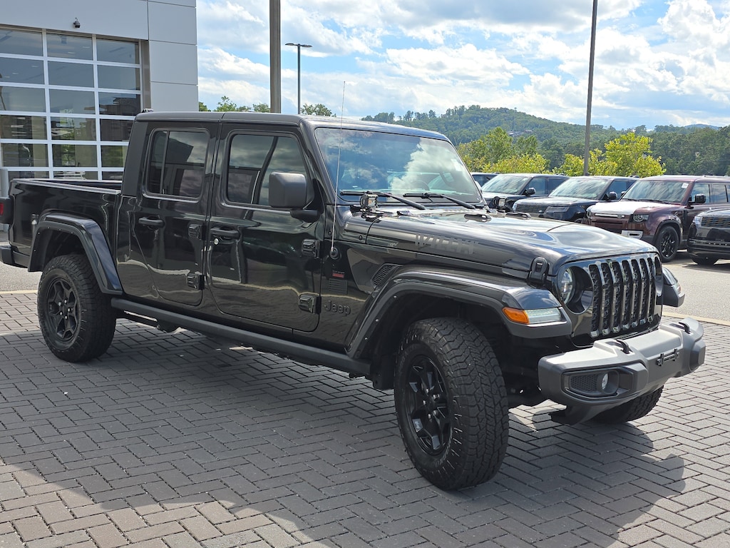 CARFAX One-Owner. Clean CARFAX. Black Clearcoat 2022 Jeep Gladiator Willys 4WD 8-Speed Automatic 3.6L V6 24V VVT Black Freedom Top 3Piece Hard Top, 1-Year SiriusXM Guardian Trial, 110 MPH Vehicle Max Speed Calibration, 115V Auxiliary Power Outlet, 2-Door Passive Entry, Front Door Locks, 220 Amp Alternator, 4-Wheel Drive Decal, 400W Inverter, 5-Year SiriusXM Traffic Service, 5-Year SiriusXM Travel Link Service, 8.4" Radio & Premium Audio Group, 8.4" Touchscreen Display, 97 MPH Vehicle Max Speed Calibration, Air Conditioning w/Auto Temperature Control, Alpine Premium Audio System, Anti-Spin Differential Rear Axle, Apple CarPlay, Auto-Dimming Rear-View Mirror, Automatic Headlamps, Black Grille, Body Color Fender Flares (2-Piece), Bridgestone Brand Tires, Cluster 7.0" TFT Color Display, Cold Weather Group, Console Bin Task Light, Convenience Group, Daytime Running Lamp System, Deep Tint Sunscreen Windows, Emergency/Assistance Call, For Details, Visit DriveUconnect.com, For More Info, Call 800-643-2112, Front 1-Touch Down Power Windows, Front Heavy Duty Red Accent Shock Absorbers, Google Android Auto, GPS Antenna Input, GPS Navigation, HD Radio, Heated Front Seats, Heated Steering Wheel, Integrated Center Stack Radio, Integrated Voice Command w/Bluetooth, Leather Wrapped Steering Wheel, Media Hub w/2 Charge Only USBs, Mold In Color Bumper w/Gloss Black, MOPAR All-Weather Slush Mats, Off-Road Info Pages, Power Heated Mirrors, Power Tailgate Lock, Protection Sill Rails, Quick Order Package 24W Willys, Radio: Uconnect 4C Nav w/8.4" Display, Rear Heavy Duty Red Accent Shock Absorbers, Remote Keyless Entry, Security Alarm, SiriusXM Radio Service, SiriusXM Satellite Radio, SiriusXM Traffic Plus, SiriusXM Travel Link, Speed Sensitive Power Locks, Sun Visors w/Illuminated Vanity Mirrors, Technology Group, Universal Garage Door Opener, USB Host Flip, Wheels: 17" x 7.5" Black Aluminum w/Gray Pad, Willys, Willys Hood Decal.