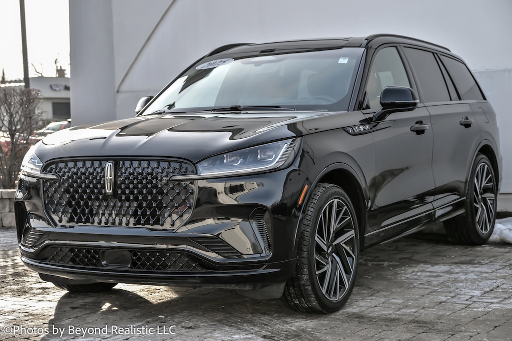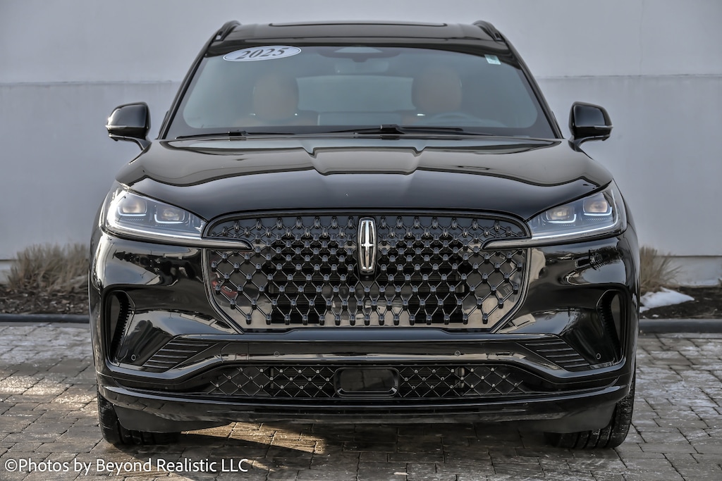Black Metallic 2025 Lincoln Aviator Black Label AWD 10-Speed Automatic 3.0L V6, 3rd row seats: split-bench, Adaptive suspension, Apple CarPlay/Android Auto, Black Exterior Elements, Body-Color Exterior Elements, Heads-Up Display, Jet Appearance Package, Lincoln Digital Experience, Power moonroof: Panoramic Vista Roof, Radio: Revel Ultima 3D Audio System w/28 Speakers, SiriusXM, Wheels: 22" Ebony Black Bright-Machined.