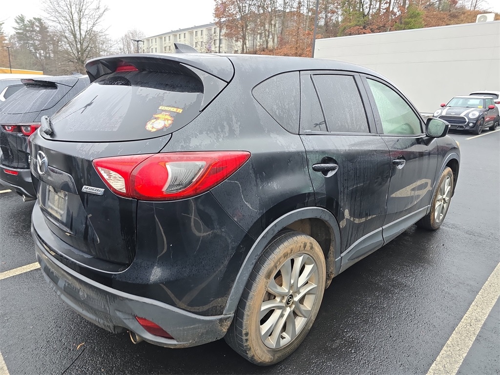 Jet Black Mica 2015 Mazda CX-5 Grand Touring FWD 6-Speed Automatic SKYACTIV® 2.5L 4-Cylinder DOHC 16V 19 x 7J Aluminum Alloy Wheels, 4-Wheel Disc Brakes, 4.62 Axle Ratio, 9 Speakers, ABS brakes, Air Conditioning, Alloy wheels, AM/FM radio: SIRIUS, Automatic temperature control, Brake assist, Bumpers: body-color, CD player, Delay-off headlights, Driver door bin, Driver vanity mirror, Dual front impact airbags, Dual front side impact airbags, Electronic Stability Control, Exterior Parking Camera Rear, Four wheel independent suspension, Front anti-roll bar, Front Bucket Seats, Front Center Armrest, Front dual zone A/C, Front fog lights, Front reading lights, Fully automatic headlights, Heated door mirrors, Heated front seats, Illuminated entry, Leather Seat Trim, Leather Shift Knob, Low tire pressure warning, Occupant sensing airbag, Outside temperature display, Overhead airbag, Overhead console, Panic alarm, Passenger door bin, Passenger vanity mirror, Power door mirrors, Power driver seat, Power moonroof, Power steering, Power windows, Radio data system, Radio: AM/FM/CD/HD Modular Audio System w/Bose, Rain sensing wipers, Rear anti-roll bar, Rear reading lights, Rear seat center armrest, Rear window defroster, Rear window wiper, Remote keyless entry, Speed control, Speed-sensing steering, Split folding rear seat, Spoiler, Steering wheel mounted audio controls, Tachometer, Telescoping steering wheel, Tilt steering wheel, Traction control, Trip computer, Turn signal indicator mirrors, Variable Heated Front Sport Shape Seats, Variably intermittent wipers.