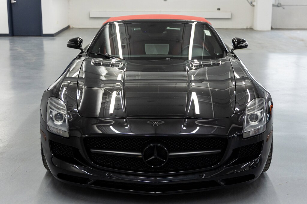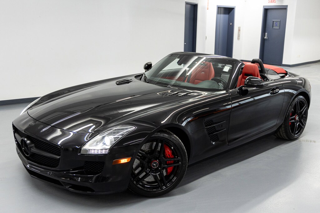 Extremely clean SLS AMG Roadester!!! Fresh service just completed! Desirable color combination, Black with Red full leather interior and Red top! Bang & Olufsen Sound system!