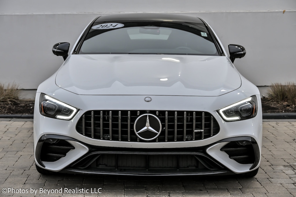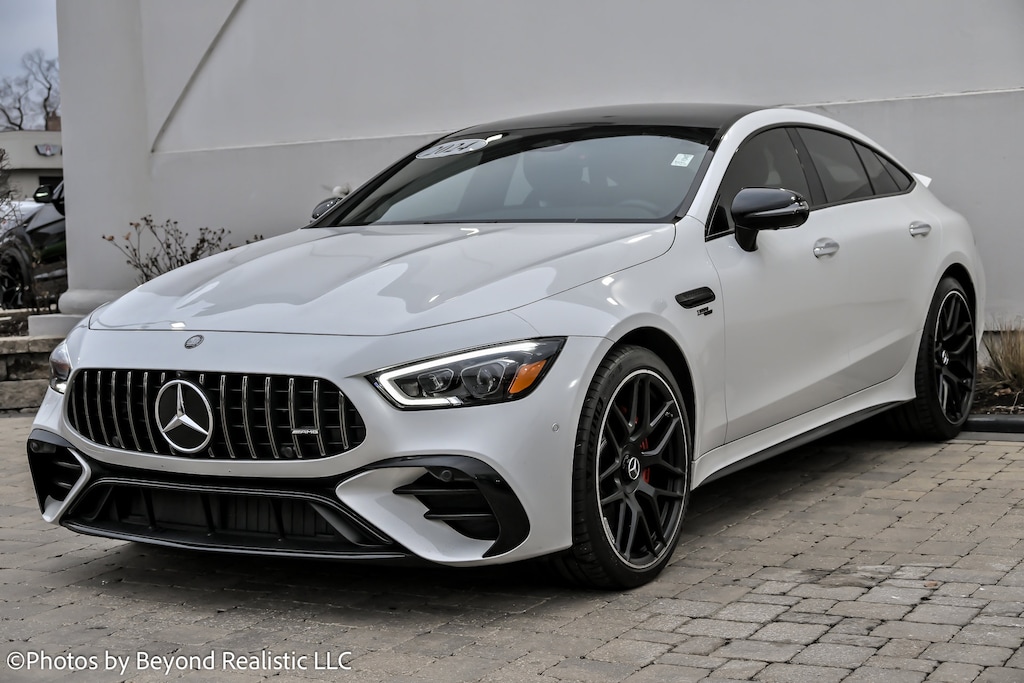 White 2024 Mercedes-Benz AMG® GT 53 4MATIC® 4MATIC® 9-Speed Automatic I6, Adaptive suspension, Fixed Panorama Roof, Wheels: 10" x 21" Fr/11.5" x 21" Rr AMG® Forged.