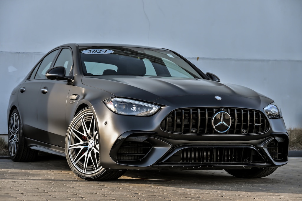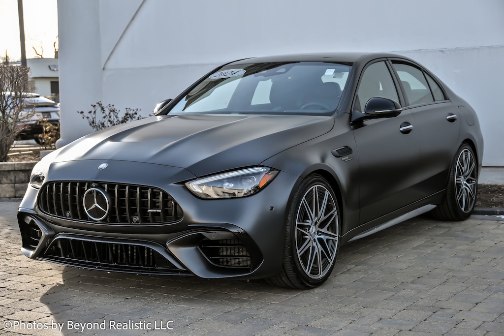 MANUFAKTUR Graphite Gray Magno 2024 Mercedes-Benz C-Class C 63 S AMG® 4MATIC® 4MATIC® 9-Speed Automatic 2.0L I4 Turbocharged Super Low Certified Miles, 2.0L I4 Turbocharged, 4MATIC®, 15 Speakers, ABS brakes, Active Lane Change Assist, Active Speed Limit Assist, Adaptive suspension, AMG® Night Package, AMG® Night Package Components, AMG® Night Package Plus, AMG® Performance Design Package, Apple CarPlay®/Android Auto®, Augmented Video for Navigation, Darkened Front Grille, Darkened Model Badging, DIGITAL LIGHT w/Projections, DISTRONIC PLUS® w/Steering & Stop & Go Assist, Driver Assistance Package, Driver Assistance Package Plus, Head-Up Display w/AMG® Specific Content, MB Navigation, Navigation system: MB Navigation, Performance-Oriented Body Styling, Pinnacle Trim Package, Power moonroof: Panorama, PRE-SAFE® Impulse Side, PRE-SAFE® PLUS, Premium audio system: MBUX, Radio: Burmester® 3D Surround Sound System, Red Brake Calipers, Remote keyless entry, Route-Based Speed Adaptation, Sport steering wheel, Tachometer, Top Speed Delimiter to 174 MPH, Wheels: 20" x 9.5J AMG® Twin 10-Spoke.