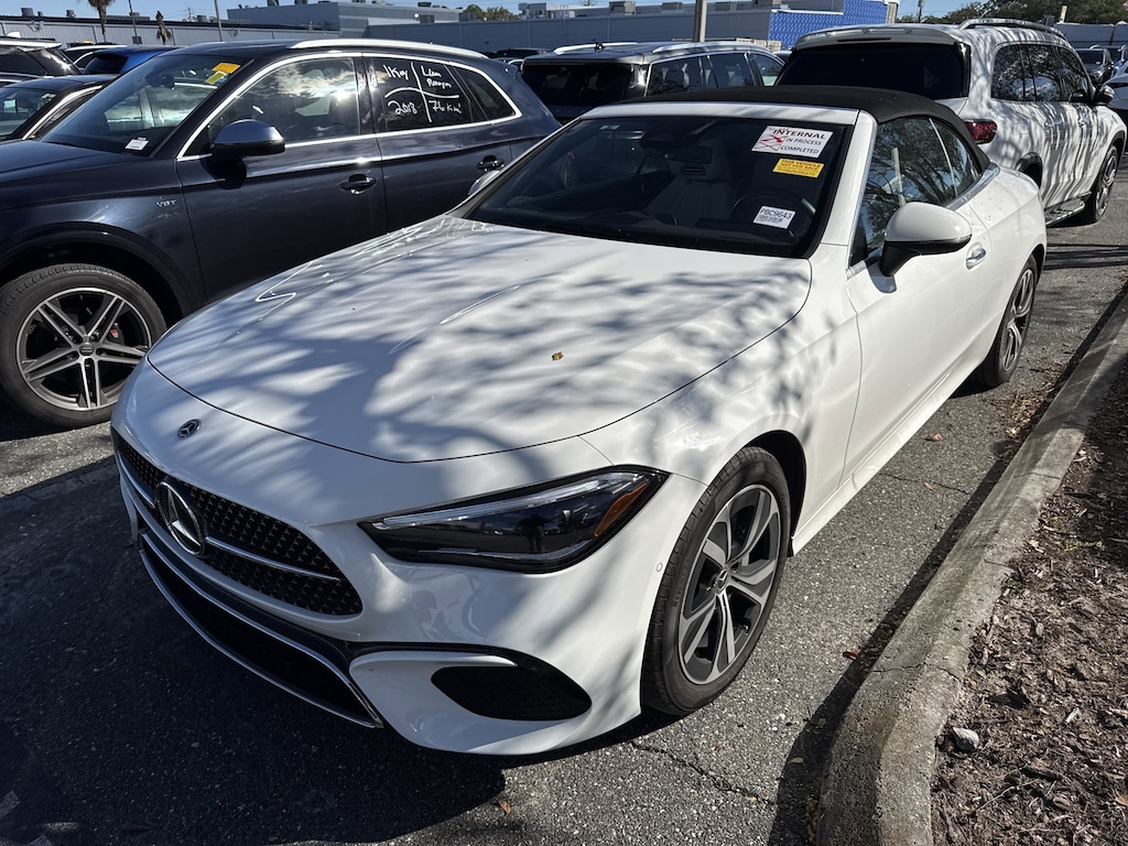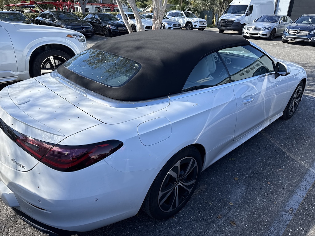 BLUETOOTH Bluetooth is a registered mark of Bluetooth SIG, Inc, BACKUP CAMERA, POWER PACKAGE - POWER WINDOWS AND DOOR LOCKS DUAL POWER SEAT, APPLE CARPLAY ANDROID CAR, ALLOY WHEELS, SOUND PACKAGE - SIRIUS XM SATELLITE RADIO, MERCEDES ME CONNECT, I4. I4, 15 Speakers, 4-Wheel Disc Brakes, ABS brakes, Air Conditioning, Alloy wheels, AM/FM radio: SiriusXM w/360L, Apple CarPlay®/Android Auto®, Auto High-beam Headlights, Auto tilt-away steering wheel, Auto-dimming door mirrors, Auto-dimming Rear-View mirror, Automatic temperature control, Brake assist, Bumpers: body-color, Child-Seat-Sensing Airbag, Compass, Convertible roof lining, Convertible roof wind blocker, Delay-off headlights, Driver door bin, Driver vanity mirror, Dual front impact airbags, Dual front side impact airbags, Electronic Stability Control, Emergency communication system: Mercedes-Benz Emergency Call Service, Exterior Parking Camera Rear, Four wheel independent suspension, Front anti-roll bar, Front Bucket Seats, Front Bucket Seats w/Memory, Front Center Armrest, Front dual zone A/C, Front reading lights, Fully automatic headlights, Garage door transmitter: HomeLink, Glass rear window, Head restraints memory, Heated door mirrors, Heated Front Seats, Heated front seats, Illuminated entry, Integrated roll-over protection, Knee airbag, Leather steering wheel, Low tire pressure warning, MB-Tex Seat Trim, Memory seat, Navigation system: MBUX, Occupant sensing airbag, Outside temperature display, Overhead airbag, Overhead console, Panic alarm, Passenger door bin, Passenger vanity mirror, Power adjustable front head restraints, Power convertible roof, Power door mirrors, Power driver seat, Power passenger seat, Power steering, Power windows, Radio data system, Radio: 3rd Generation MBUX Multimedia System, Rain sensing wipers, Rear anti-roll bar, Rear fog lights, Rear window defroster, Remote keyless entry, Security system, SiriusXM Satellite Radio, Speed control, Speed-sensing steering, Split folding rear seat, Steering wheel memory, Steering wheel mounted audio controls, Tachometer, Telescoping steering wheel, Tilt steering wheel, Traction control, Trip computer, Turn signal indicator mirrors, Variably intermittent wipers, and Wheels: 18" 5-Twin-Spoke Black.