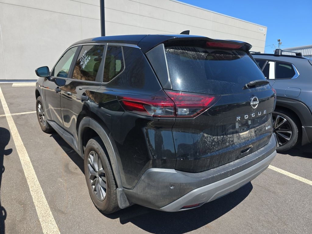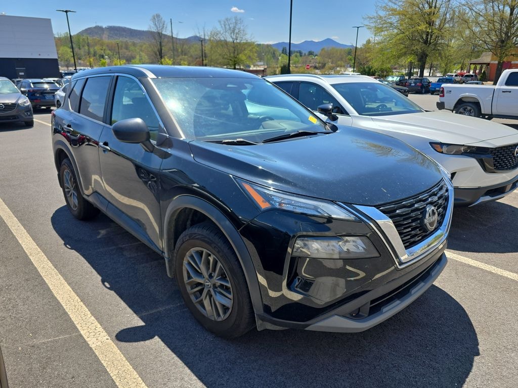 Super Black 2023 Nissan Rogue S AWD CVT with Xtronic 1.5L I3 Turbocharged DOHC 12V LEV3-ULEV50 201hp AWD, 17" Aluminum Alloy Wheels, 4 Speakers, 4-Wheel Disc Brakes, 5.604 Axle Ratio, ABS brakes, Air Conditioning, Alloy wheels, AM/FM Radio, AM/FM radio: SiriusXM, Auto High-beam Headlights, Black Splash Guards (Set of 4), Blind Spot Warning, Brake assist, Bumpers: body-color, Cloth Seat Trim, Delay-off headlights, Driver door bin, Driver vanity mirror, Dual front impact airbags, Dual front side impact airbags, Electronic Stability Control, First Aid Kit, Floor Mats w/1-Piece Cargo Area Protector, Four wheel independent suspension, Front anti-roll bar, Front Bucket Seats, Front Center Armrest, Front reading lights, Fully automatic headlights, Illuminated entry, Knee airbag, Low tire pressure warning, NissanConnect featuring Apple CarPlay and Android Auto, Occupant sensing airbag, Outside temperature display, Overhead airbag, Overhead console, Panic alarm, Passenger door bin, Passenger vanity mirror, Power door mirrors, Power steering, Power windows, Radio data system, Rear anti-roll bar, Rear Parking Sensors, Rear seat center armrest, Rear side impact airbag, Rear window defroster, Rear window wiper, Remote keyless entry, Speed control, Speed-Sensitive Wipers, Split folding rear seat, Spoiler, Steering wheel mounted audio controls, Tachometer, Telescoping steering wheel, Tilt steering wheel, Traction control, Trip computer, Variably intermittent wipers, AWD.