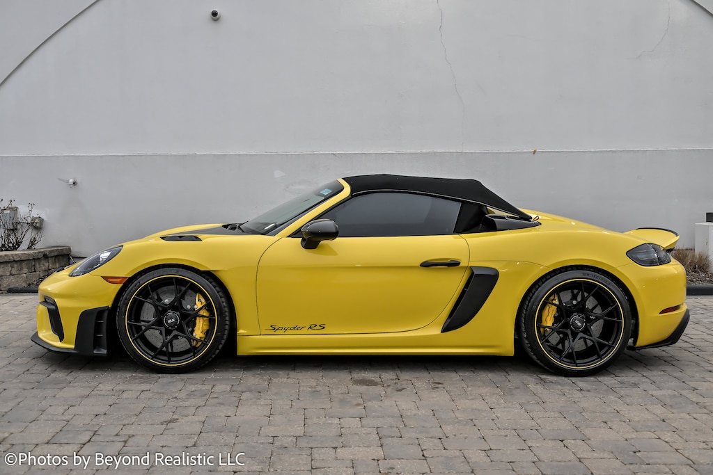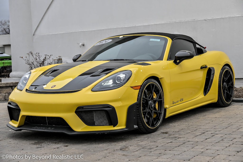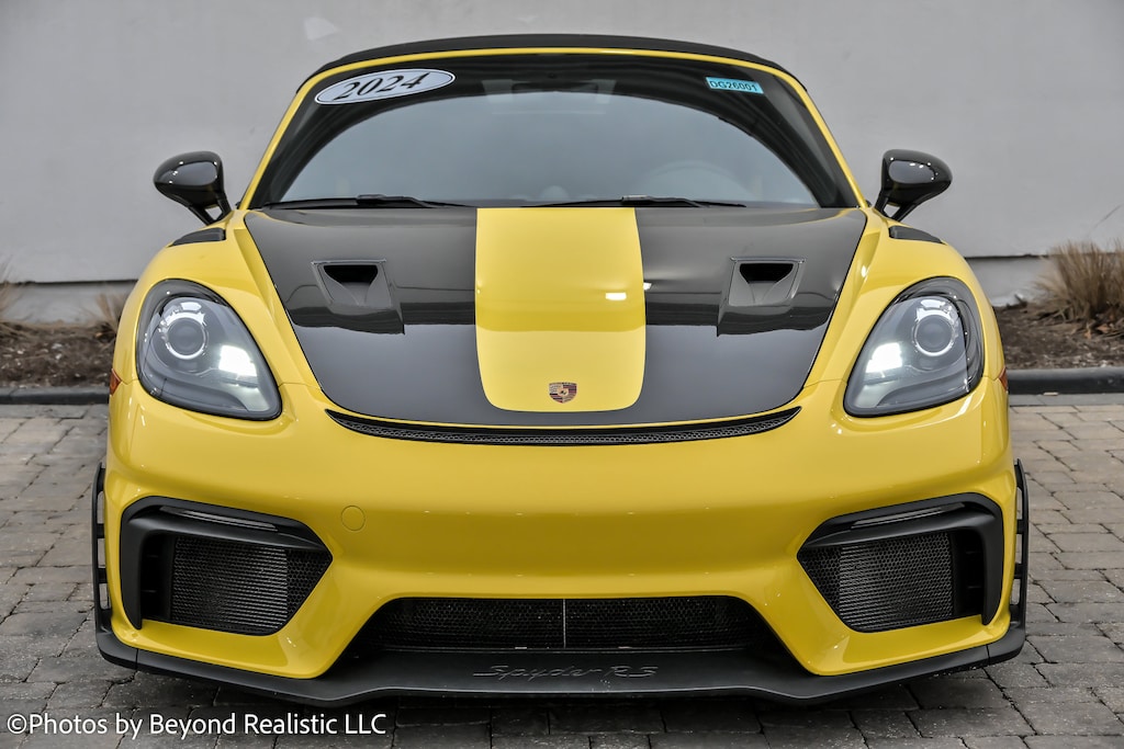 Racing Yellow 2024 Porsche 718 Spyder RS RWD 7-Speed Porsche Doppelkupplung (PDK) 4.0L H6 DOHC 24V LEV3-ULEV125 493hp, 18-Way Adaptive Sport Seats Plus, Apple CarPlay, Sound Package Plus w/6 Loudspeakers.