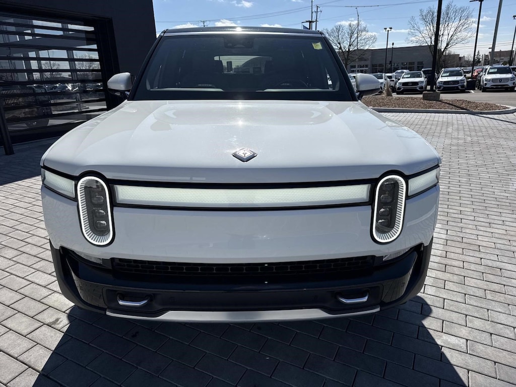 Glacier White 2023 Rivian R1S Adventure AWD 1-Speed Automatic Electric ZEV 19 Speakers, Alloy wheels, Audio memory, Auto tilt-away steering wheel, Auto-dimming door mirrors, Auto-dimming Rear-View mirror, Automatic temperature control, Brake assist, Driver door bin, Driver vanity mirror, Dual front side impact airbags, Electronic Stability Control, Emergency communication system, Exterior Parking Camera Rear, Front anti-roll bar, Front dual zone A/C, Front reading lights, Heated door mirrors, Heated steering wheel, Illuminated entry, Knee airbag, Low tire pressure warning, Memory seat, Navigation System, Occupant sensing airbag, Panic alarm, Passenger door bin, Perf Vegan Leather Seat Trim w/Patterned Stitching, Perforated Vegan Leather Seat Trim, Power door mirrors, Power driver seat, Power passenger seat, Power steering, Power windows, Radio: New Rivian Elevation Audio, Rear air conditioning, Rear audio controls, Rear dual zone A/C, Rear seat center armrest, Rear window defroster, Security system, Split folding rear seat, Steering wheel memory, Tilt steering wheel, Turn signal indicator mirrors, Ventilated front seats, Wheels: 22" Sport Dark Machined Aluminum.