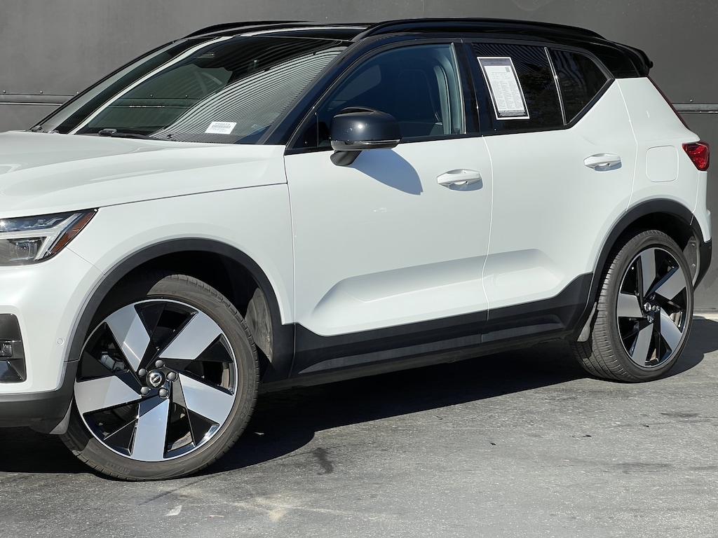 This 2024 Volvo XC40 Recharge Twin Motor Plus is a fully electric compact luxury SUV offering 402 horsepower and 494 lb-ft of instant torque from dual electric motors, delivering confident all-wheel-drive performance and smooth one-pedal driving. Its 78 kWh battery provides an EPA-estimated 254-mile range on a full charge, with fast acceleration and quiet, emissions-free cruising. Finished in Crystal White with a Charcoal Connect Suede/Microtech interior, it features a laminated panoramic roof, 19" alloy wheels, and Google built-in infotainment with a 12.3" digital driver display and wireless Apple CarPlay. Premium comfort and convenience appointments include power front seats with driver memory, a heated steering wheel, heated front seats, inductive smartphone charging, and a power-operated tailgate. Advanced safety tech comes standard with Volvos Collision Avoidance system, Blind Spot Information with Cross Traffic Alert, Lane Keeping Aid, Run-off Road Protection, and a 360 parking aid. With a Clean CARFAX and just one owner, this XC40 Recharge is a standout EV for drivers seeking refined Scandinavian design, effortless electric performance, and a well-equipped luxury experience.