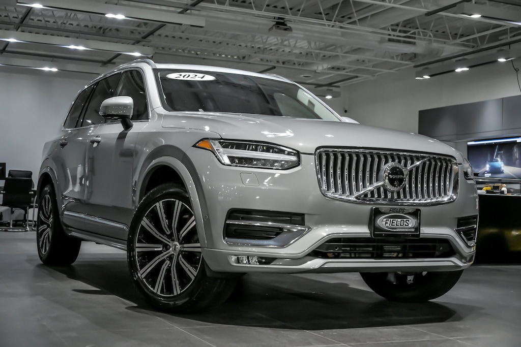 Gray 2024 Volvo XC90 B6 Plus Bright Theme AWD Automatic with Geartronic 2.0L I4 Turbocharged DOHC 16V LEV3-ULEV70 , AWD, Black Leather, 3rd row seats: bucket, ABS brakes, Apple CarPlay, Brake assist, Four wheel independent suspension, Leather Upholstery, Memory seat, Rear dual zone A/C.